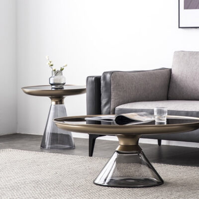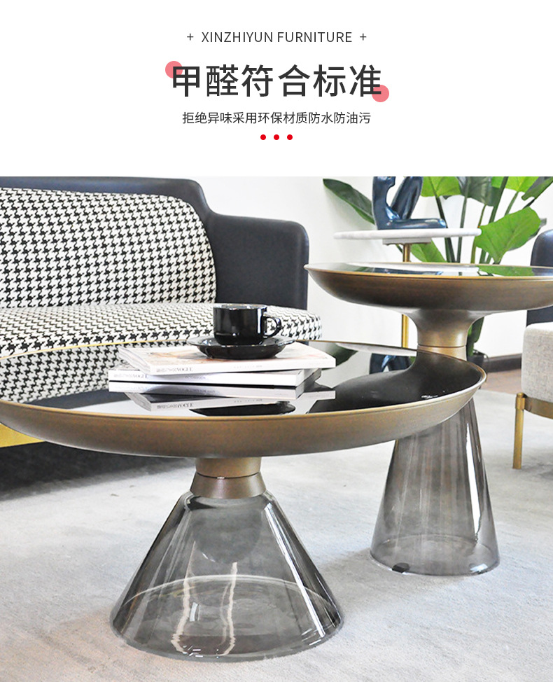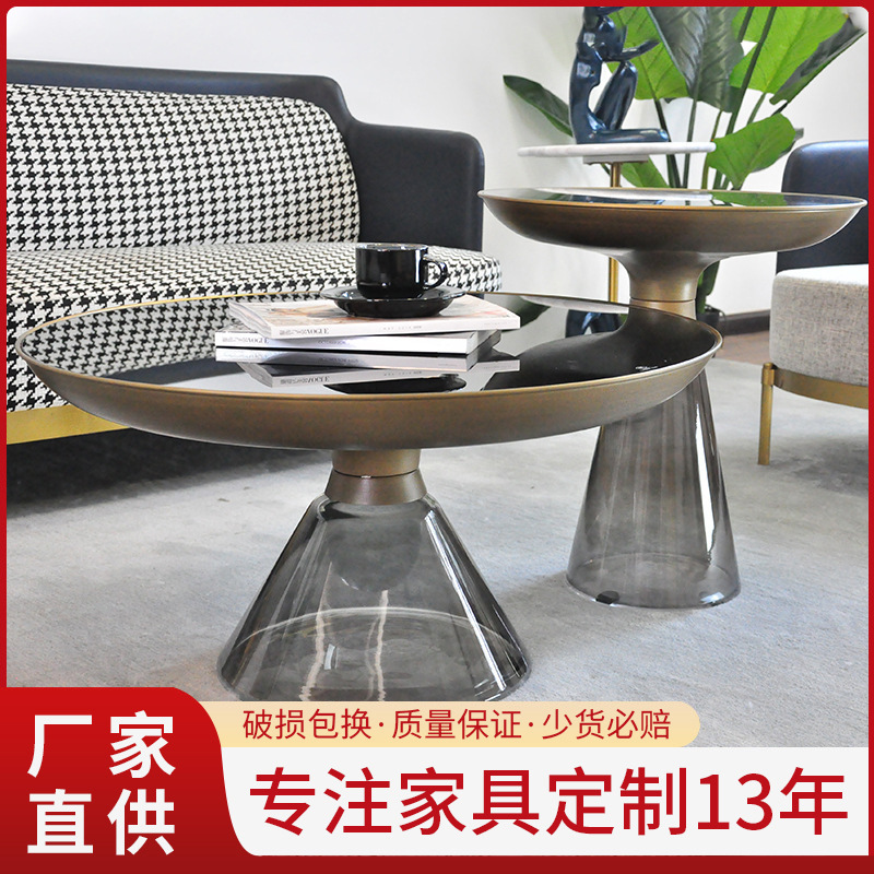 Bàn cà phê Ý kích thước tối giản bàn cà phê thủy tinh tròn kết hợp căn hộ nhỏ phòng khách ins nhà bàn cà phê bàn tròn nhỏ