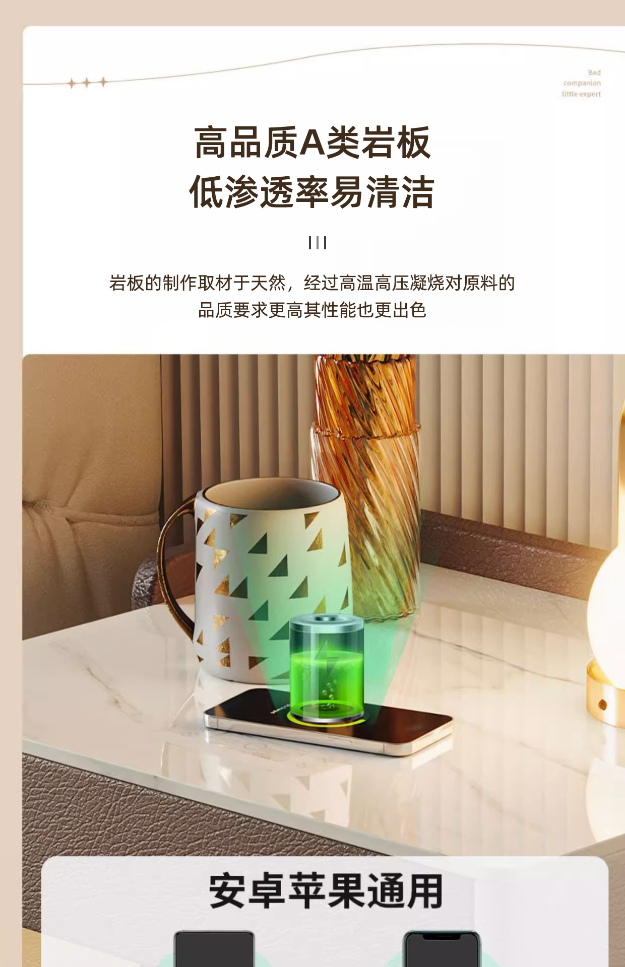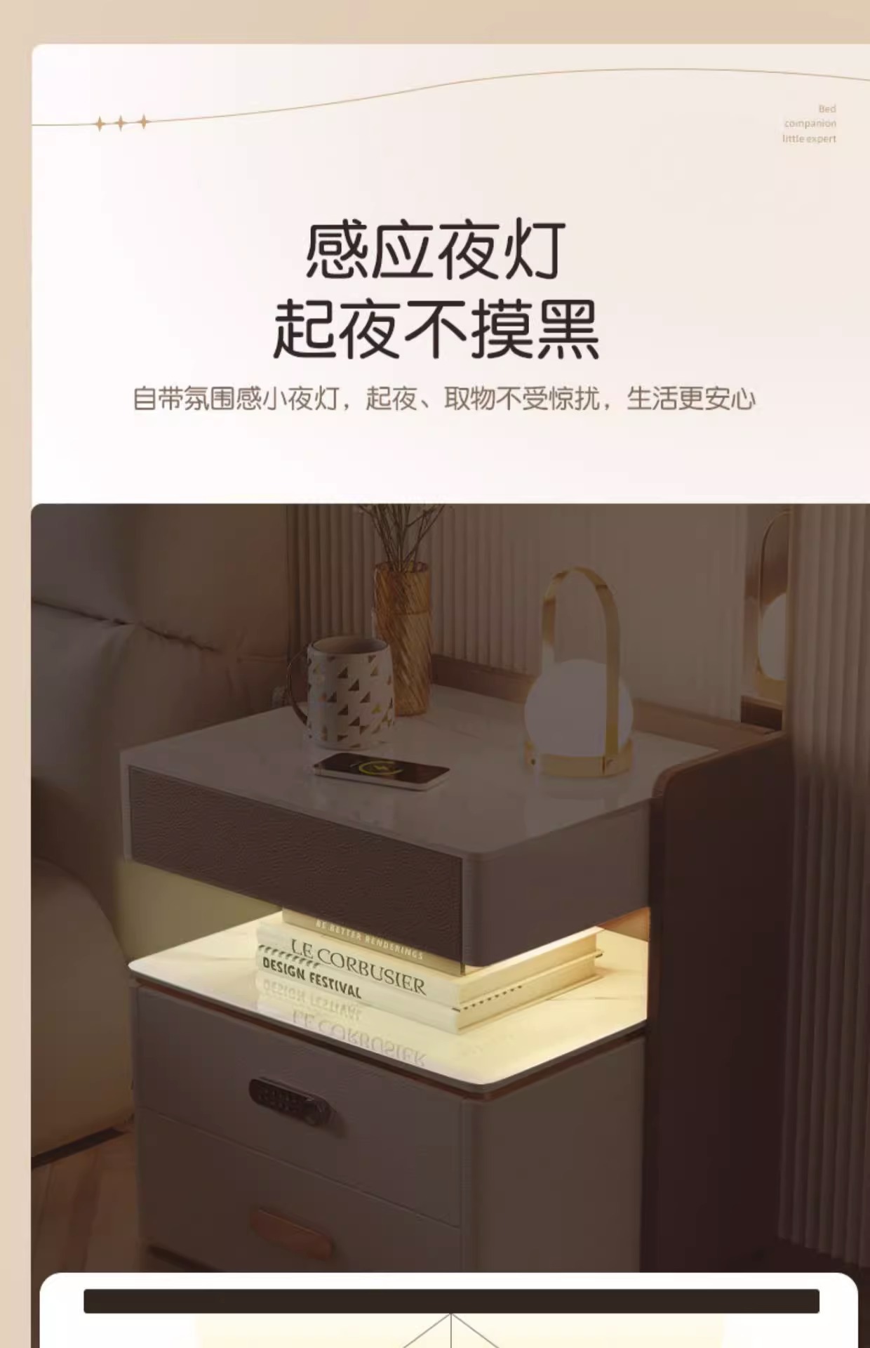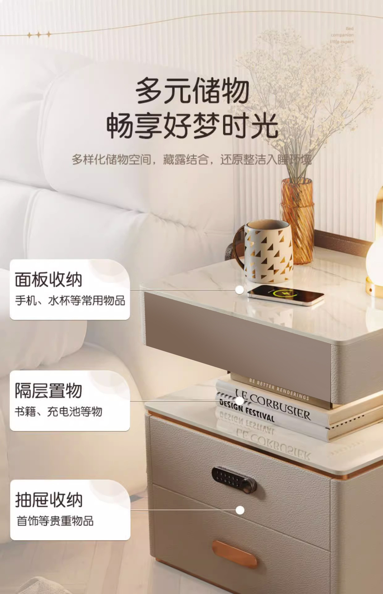 Bàn cạnh giường ngủ thông minh đơn giản hiện đại Đẹp sang trọng cao cấp sạc không dây lưu trữ nhỏ lưới gỗ nguyên khối tủ bên phòng ngủ màu đỏ