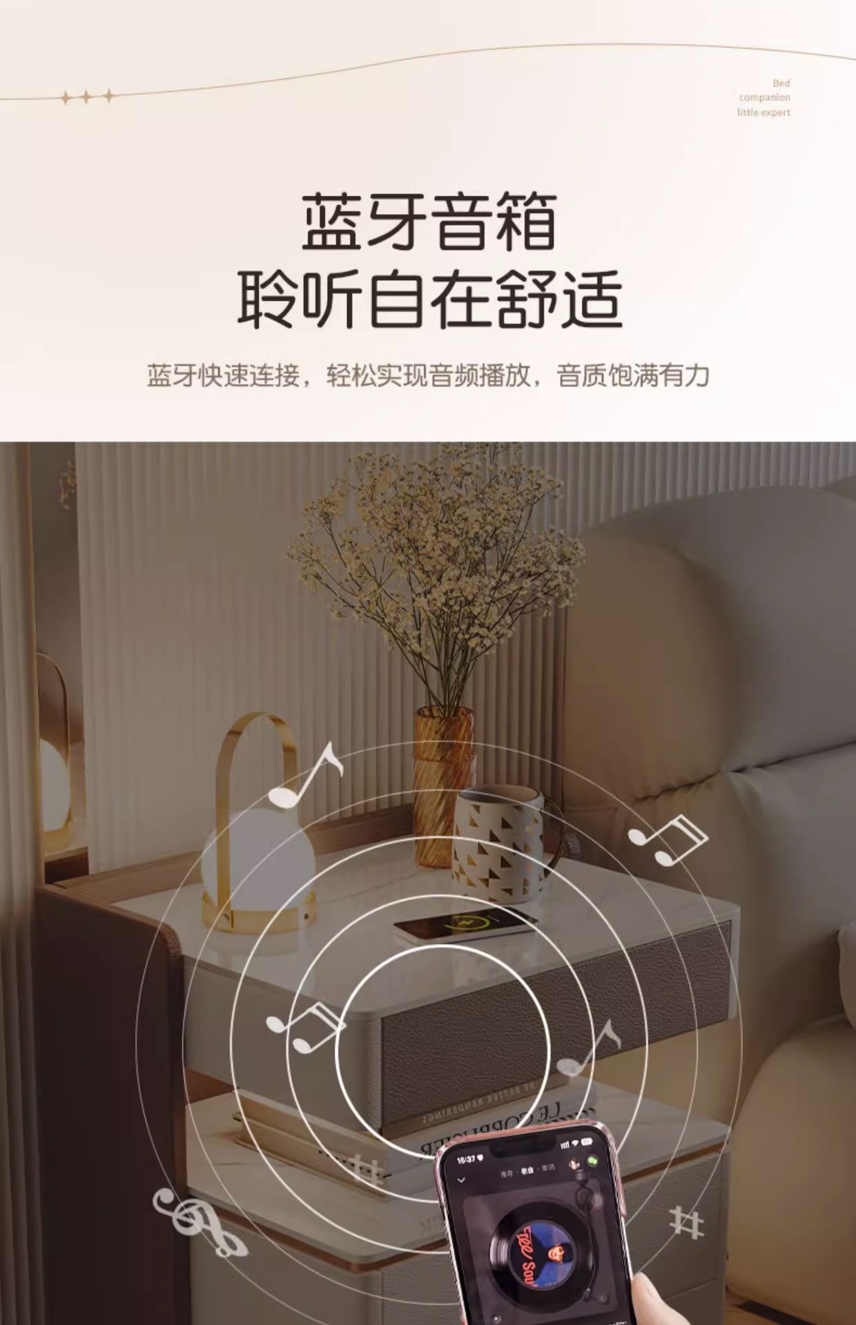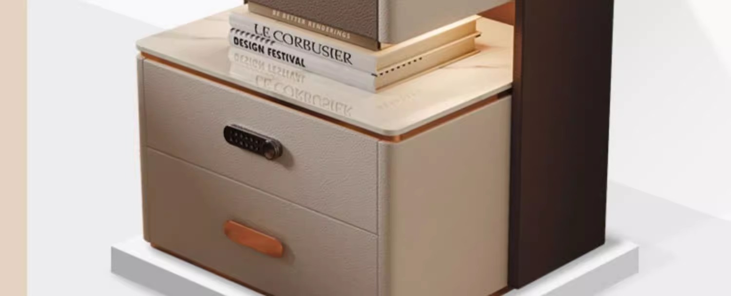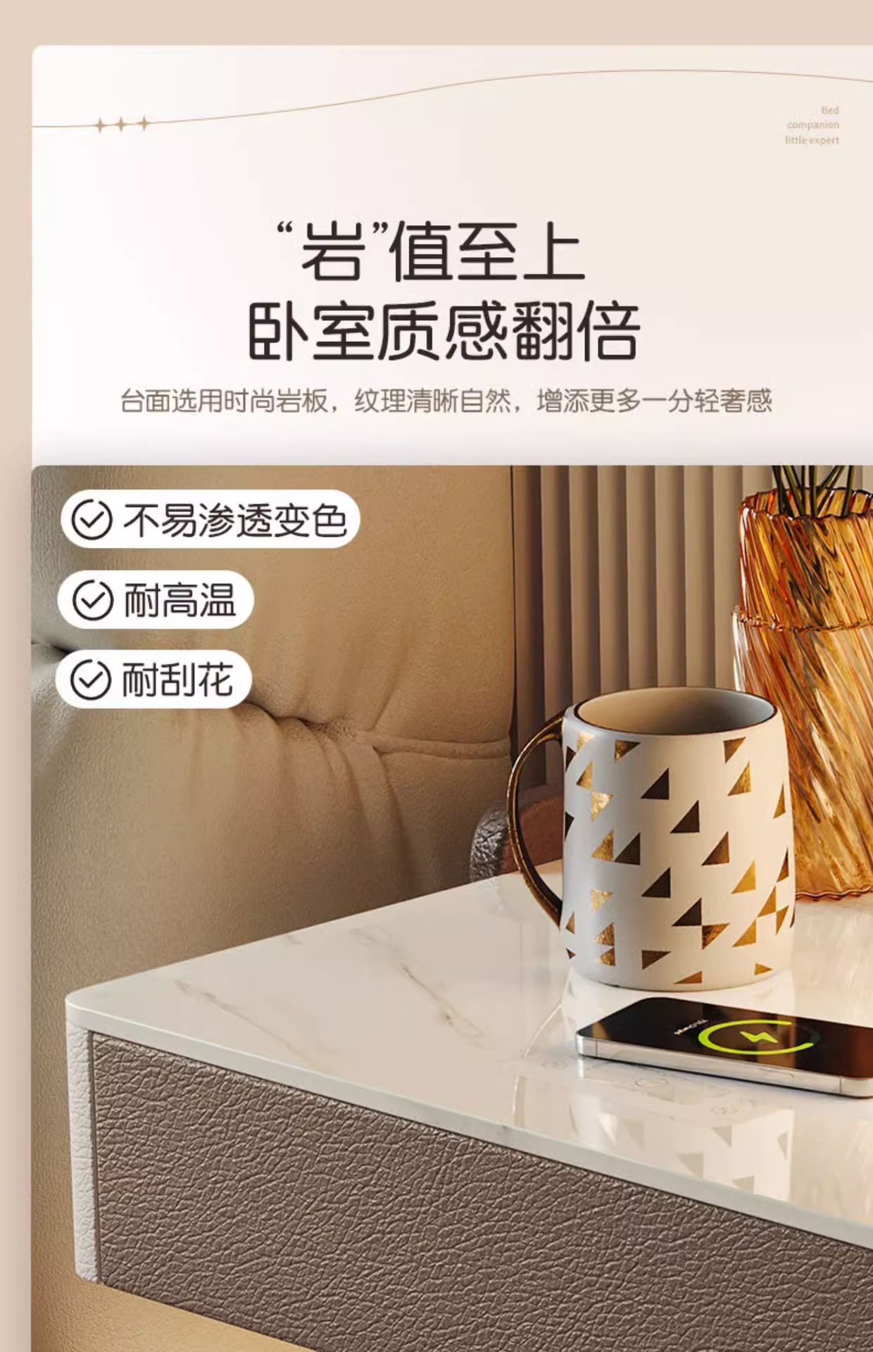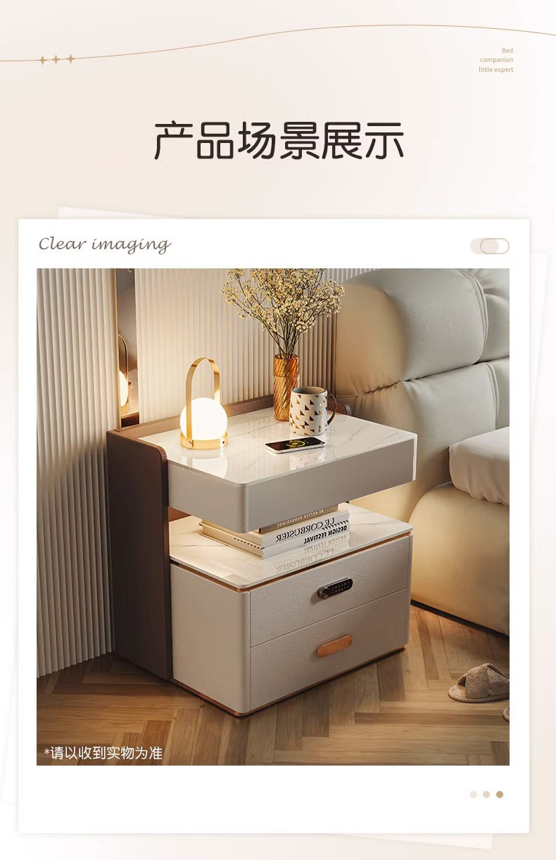 Bàn cạnh giường ngủ thông minh đơn giản hiện đại Đẹp sang trọng cao cấp sạc không dây lưu trữ nhỏ lưới gỗ nguyên khối tủ bên phòng ngủ màu đỏ