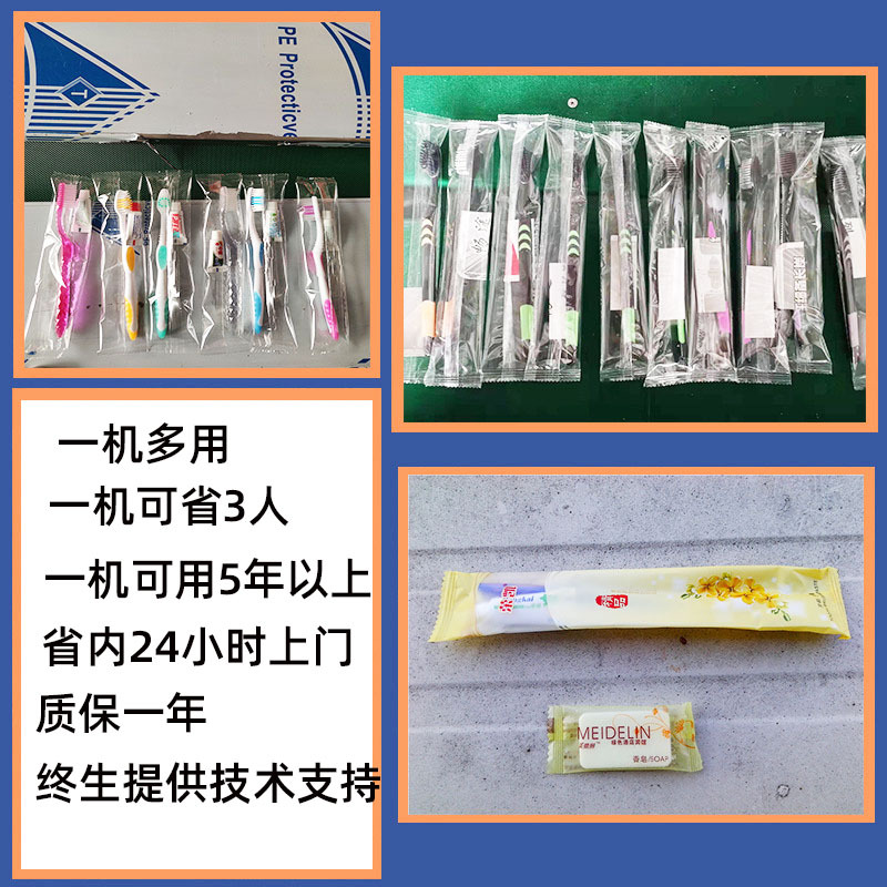 Bàn chải đánh răng dao cạo lược máy đóng gói tự động đồ vệ sinh cá nhân khách sạn dùng một lần nhà máy sản xuất máy móc đóng gói