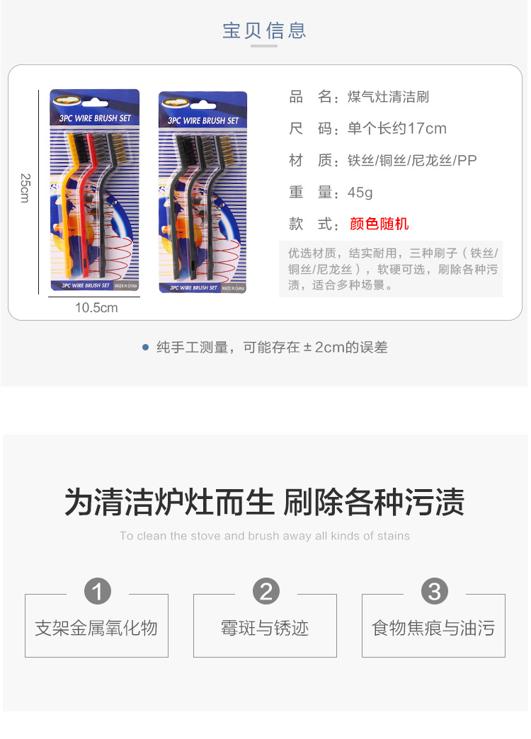 Bàn chải làm sạch bếp gas Nhật Bản 3 miếng vật tư nhà bếp phạm vi máy hút mùi dụng cụ làm sạch bếp dây bàn chải nhỏ