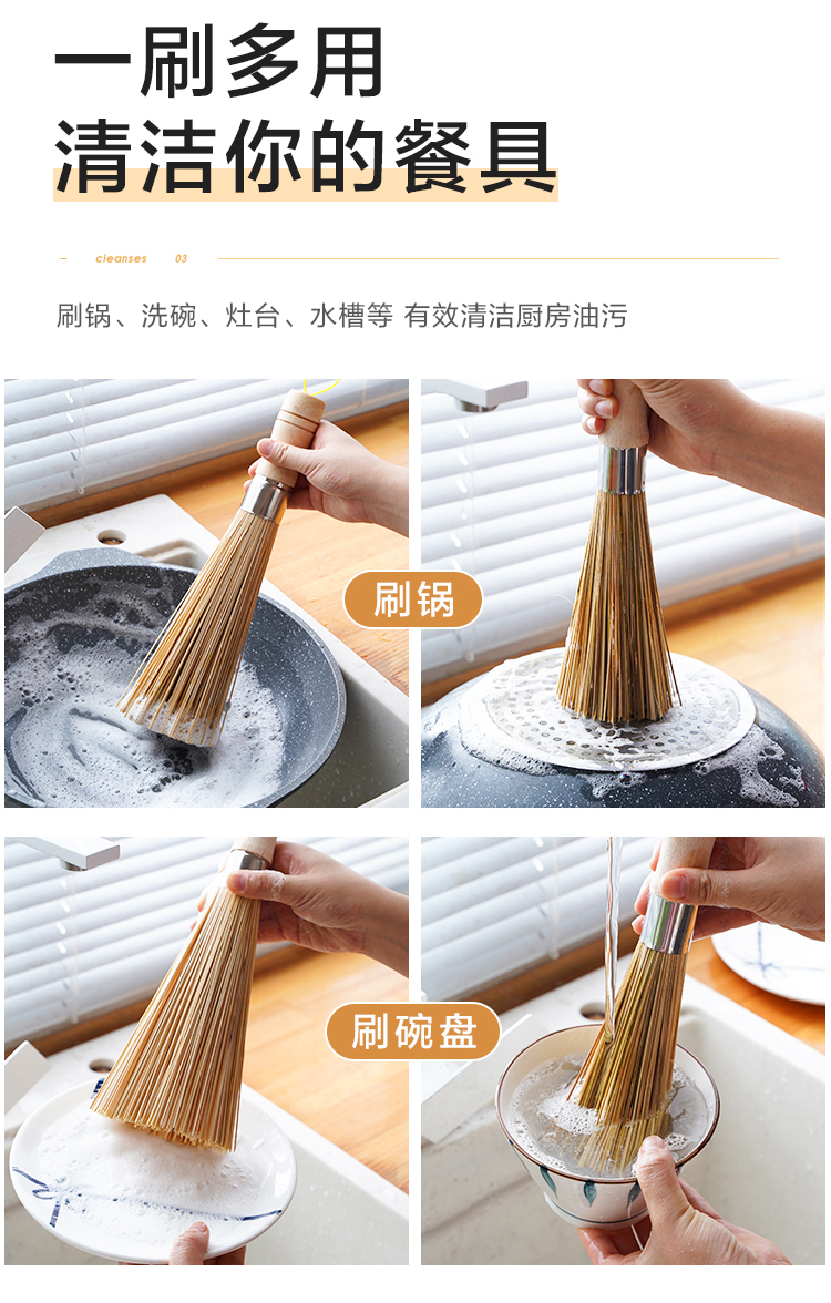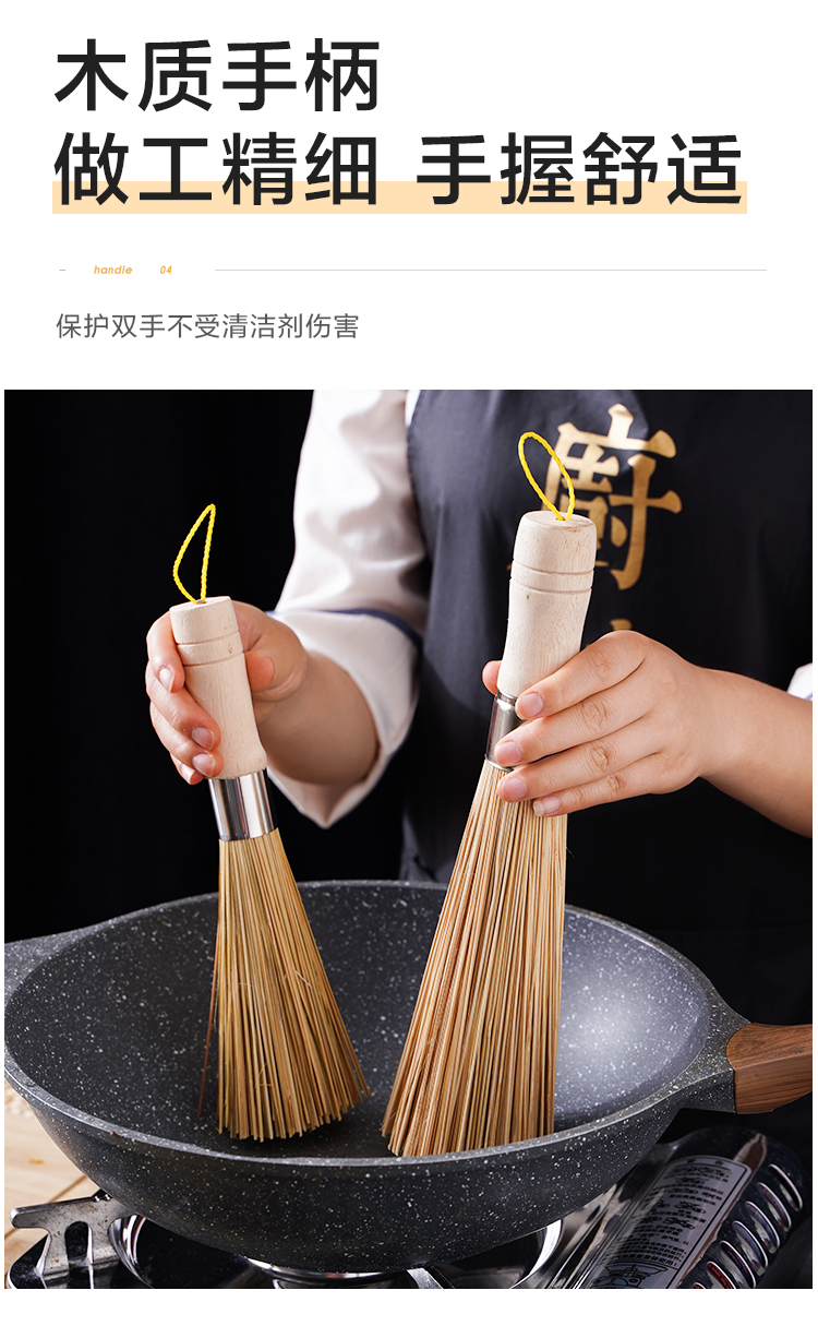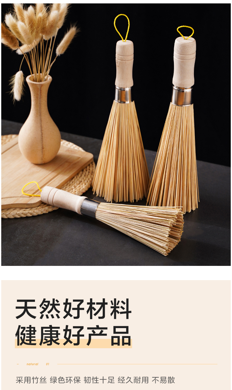 Bàn chải nồi tạo tác bàn chải tre làm thủ công kiểu cũ chổi nồi bàn chải nhà bếp gia dụng công cụ làm sạch dầu chống dính