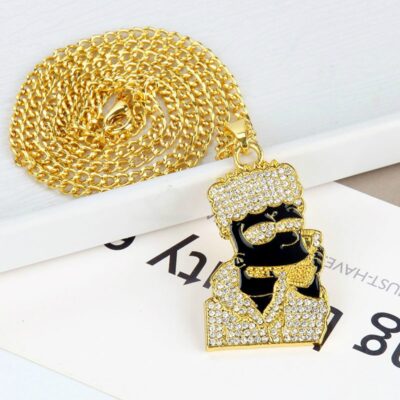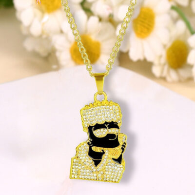 Bán Chạy Âu Mỹ Hip-Hop Vòng Cổ Kính Mát Nam Rap Punk Simpson Mặt Dây Chuyền Nhỏ Giọt Dầu Đầy Trang Sức Kim Cương Bán Buôn
