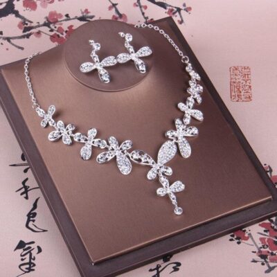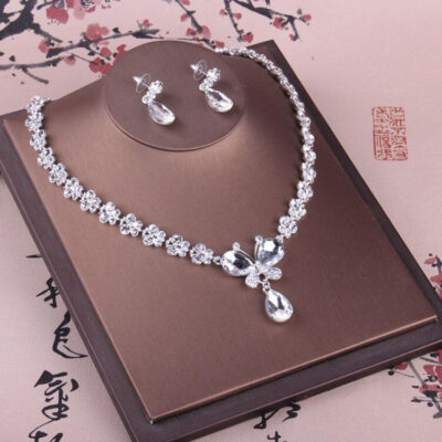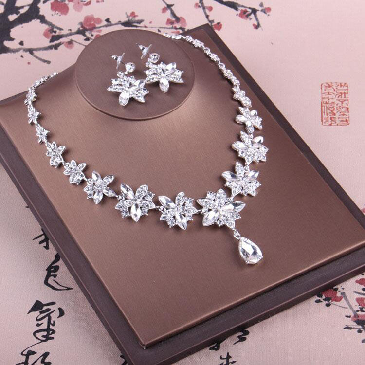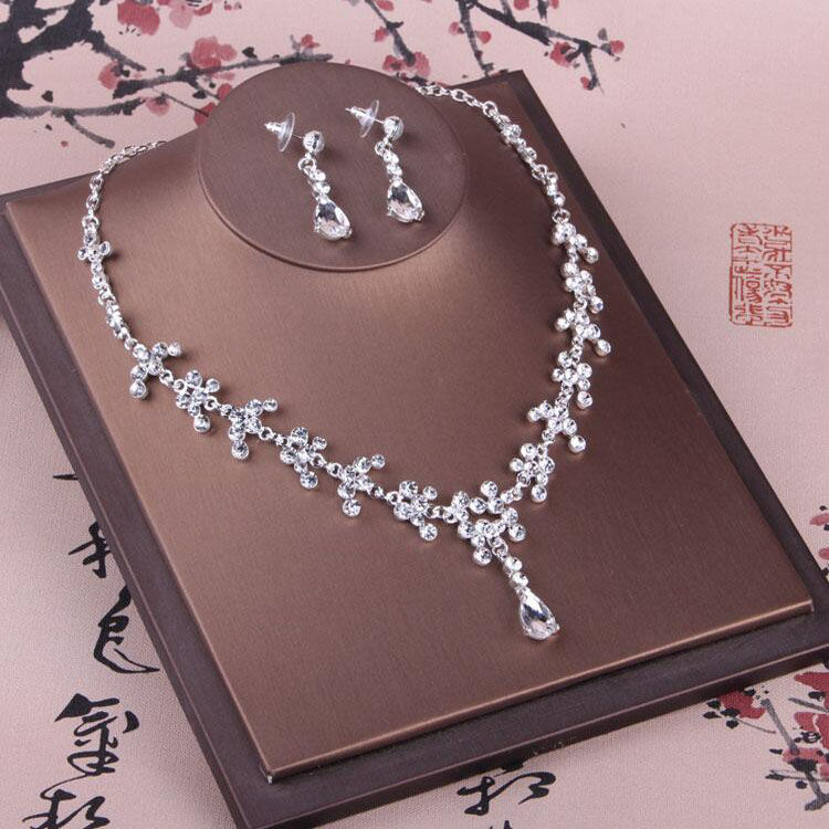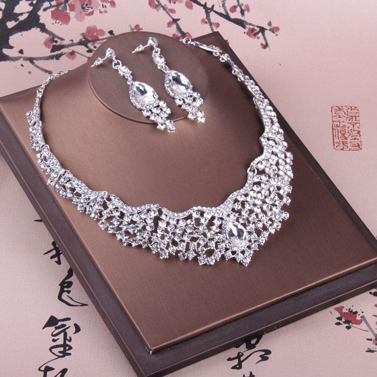Bán Chạy Nhất Mới Trang Sức Cô Dâu Vòng Cổ Cưới Bầu Không Khí Bông Tai Vòng Cổ 2 Kim Cương Giả Áo Cưới Bộ Dây Chuyền