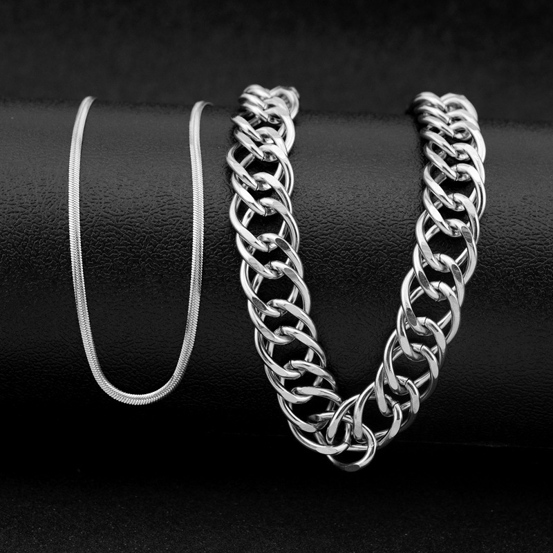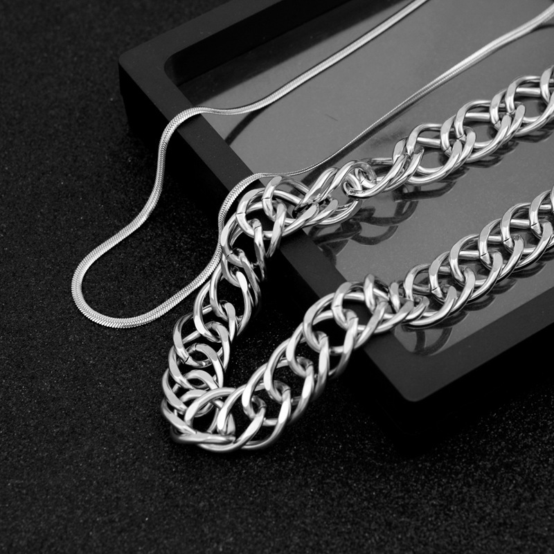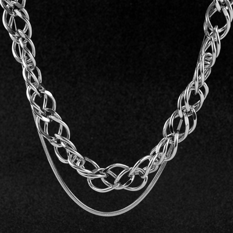 Bán chạy nhất phong cách bùng nổ thép không gỉ cá tính thắt nút vòng cổ hai lớp mặt dây chuyền đá xếp chồng lên nhau chuỗi vòng cổ xương đòn