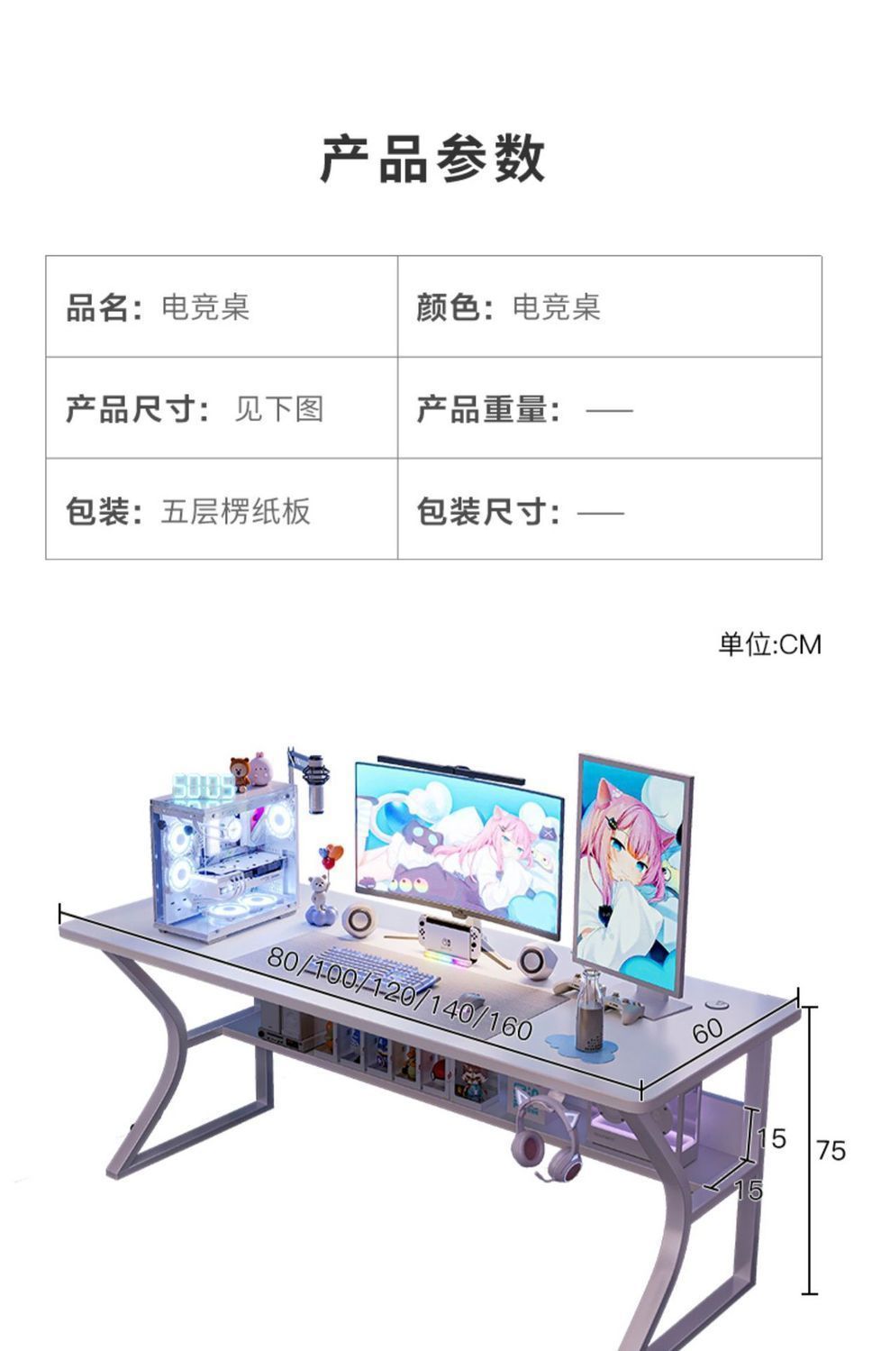 Bàn chơi game màu trắng Bàn máy tính Máy tính để bàn Phòng ngủ tại nhà Bàn ghế văn phòng Bộ bàn viết học tập đơn giản