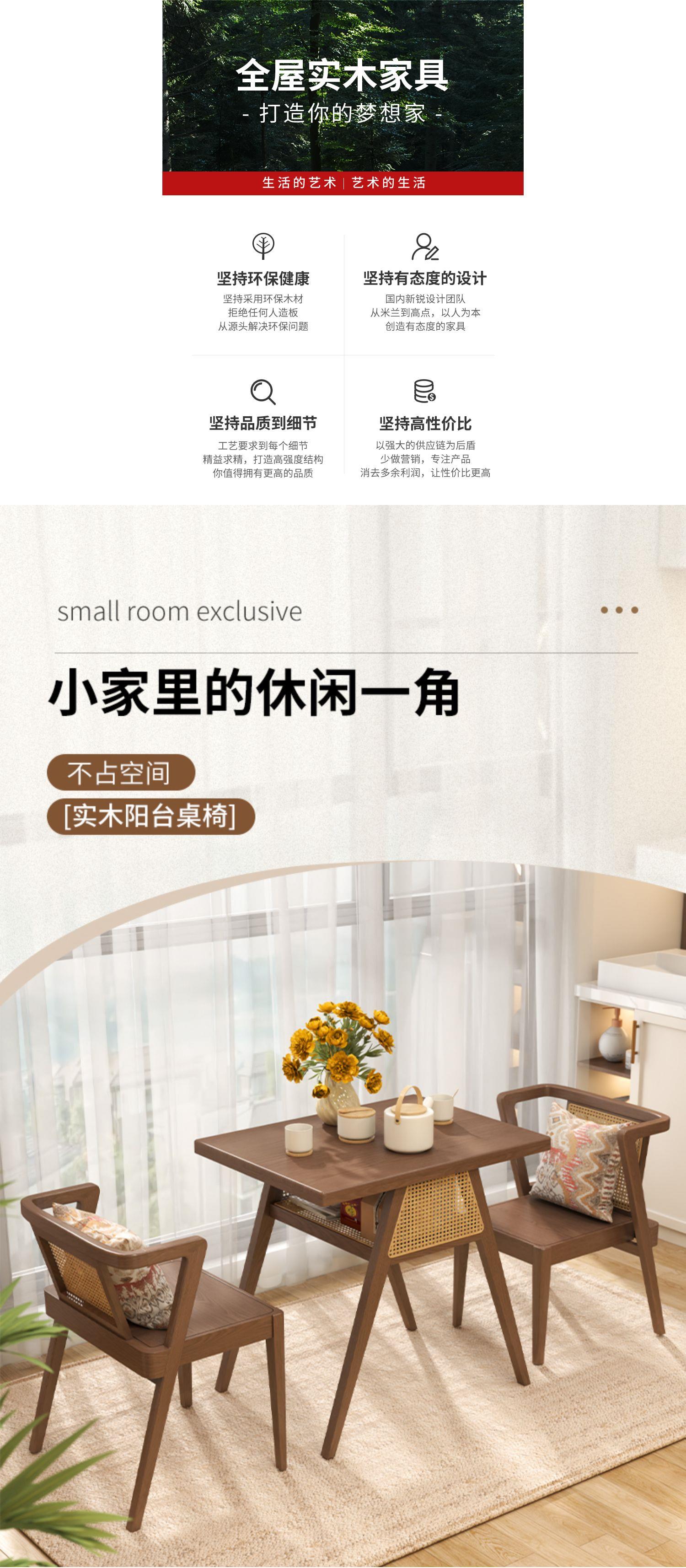 Ban công Bàn ghế nhỏ kết hợp ba mảnh ghế mây giải trí lưới màu đỏ một bàn hai ghế gỗ nguyên khối đơn giản đọc sách và uống trà bàn ghế