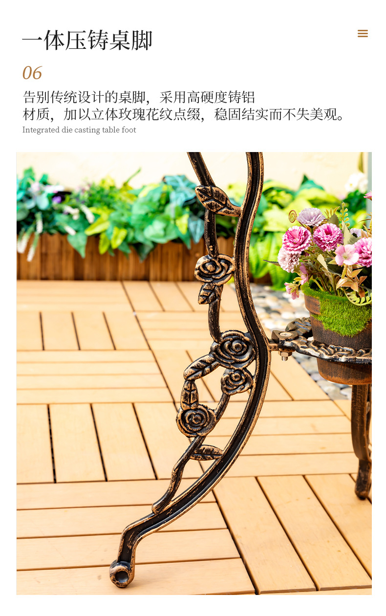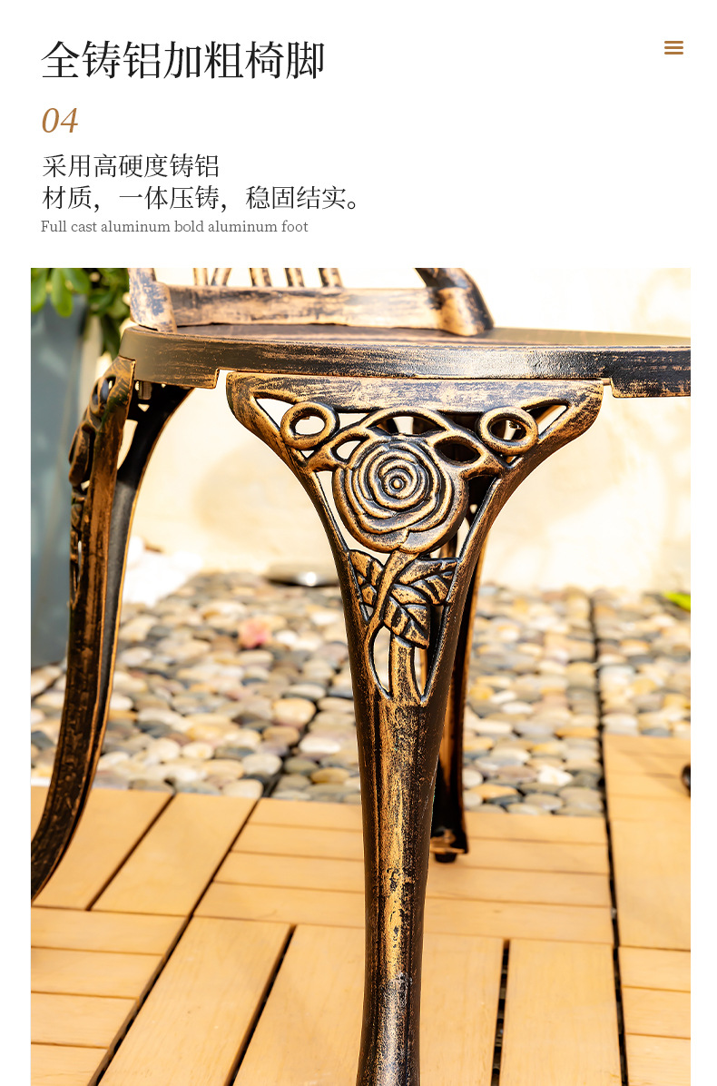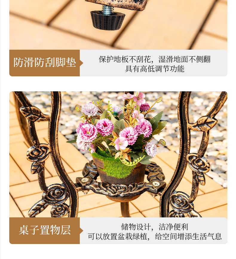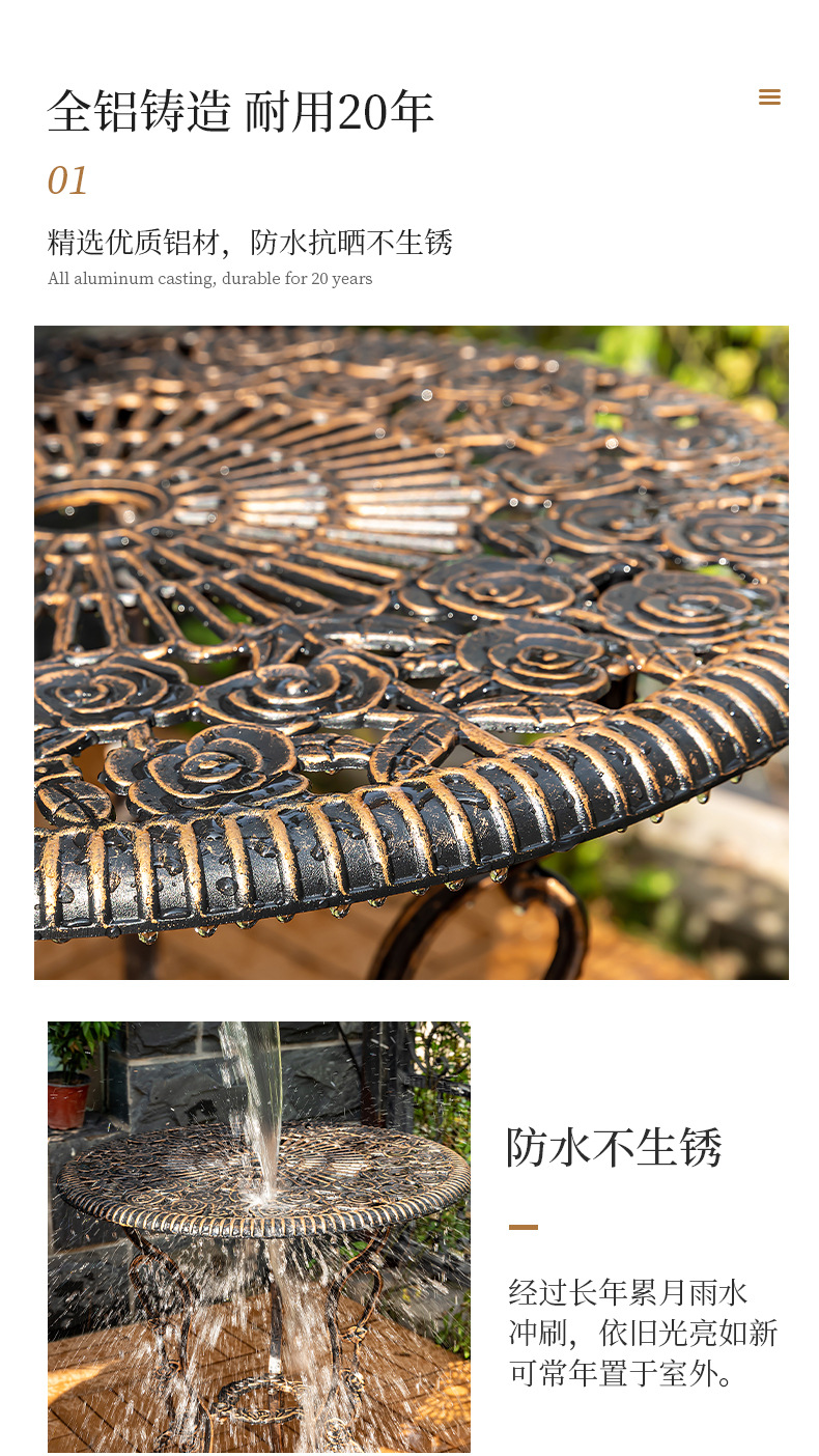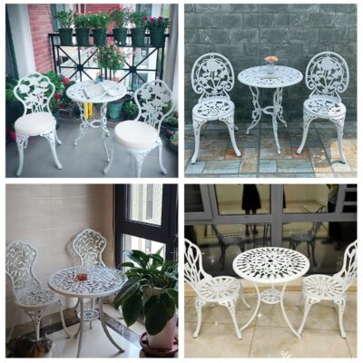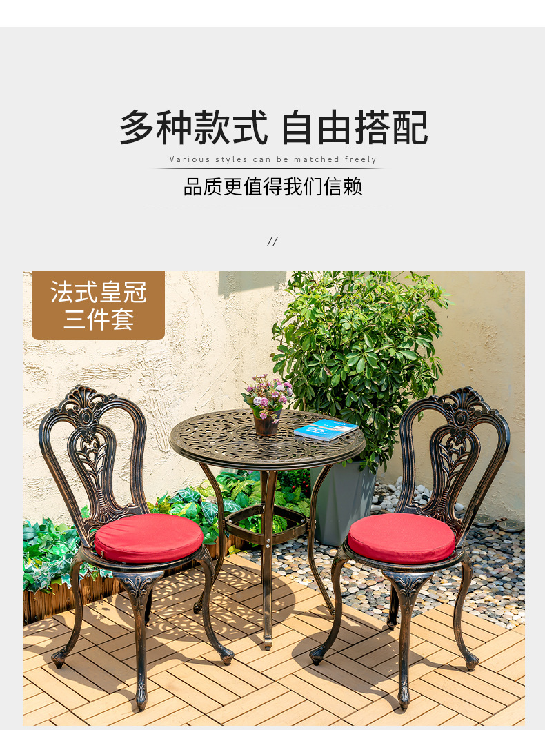 Ban công bàn ghế nhỏ ngoài trời sân vườn phong cách Châu Âu nhôm đúc chống mưa ngoài trời bằng sắt rèn sân thượng giải trí bàn cà phê bộ ba món được thiết kế để tạo điểm nhấn cho khu vực sân vườn, ban công hoặc không gian ngoài trời.