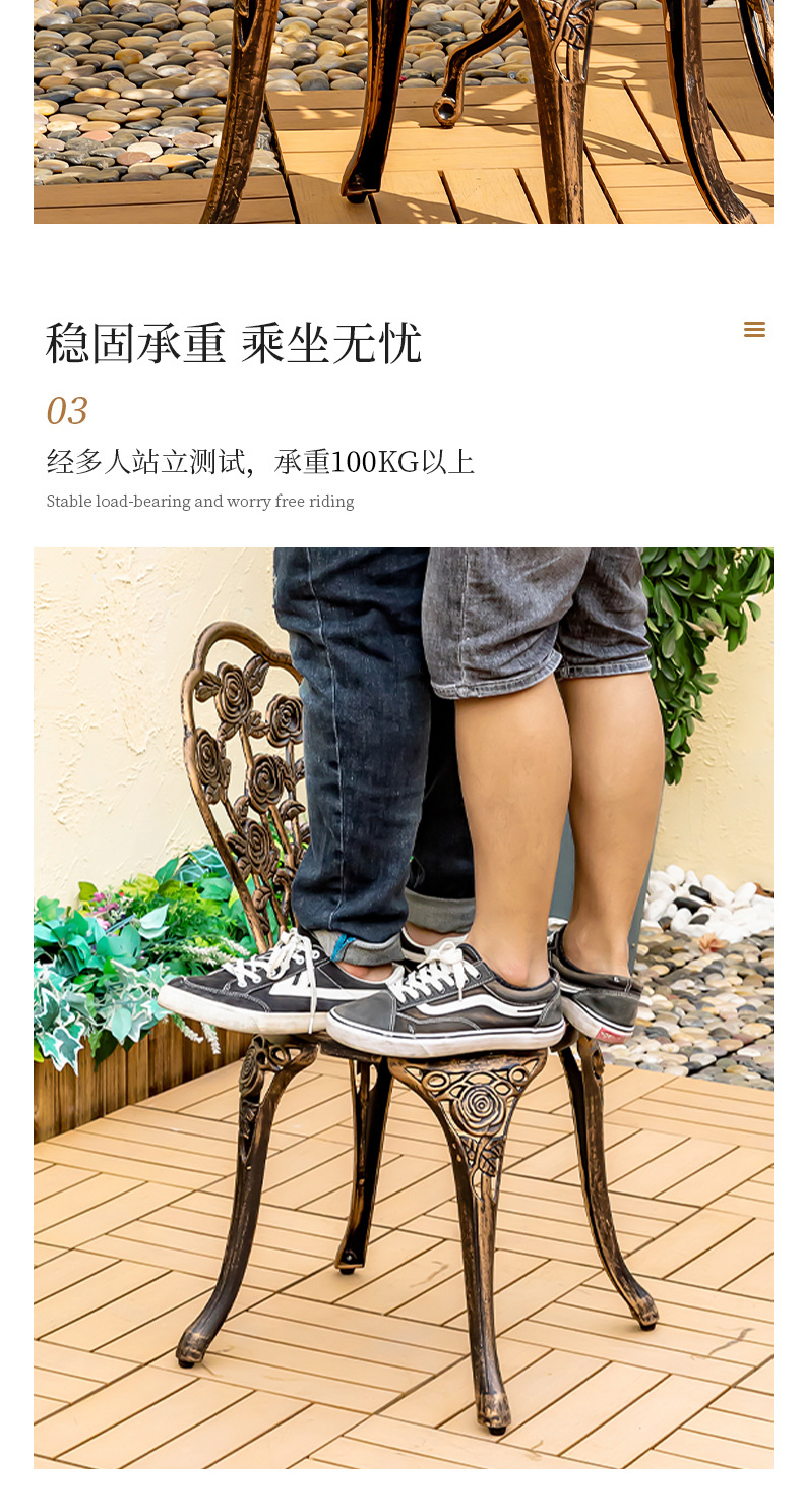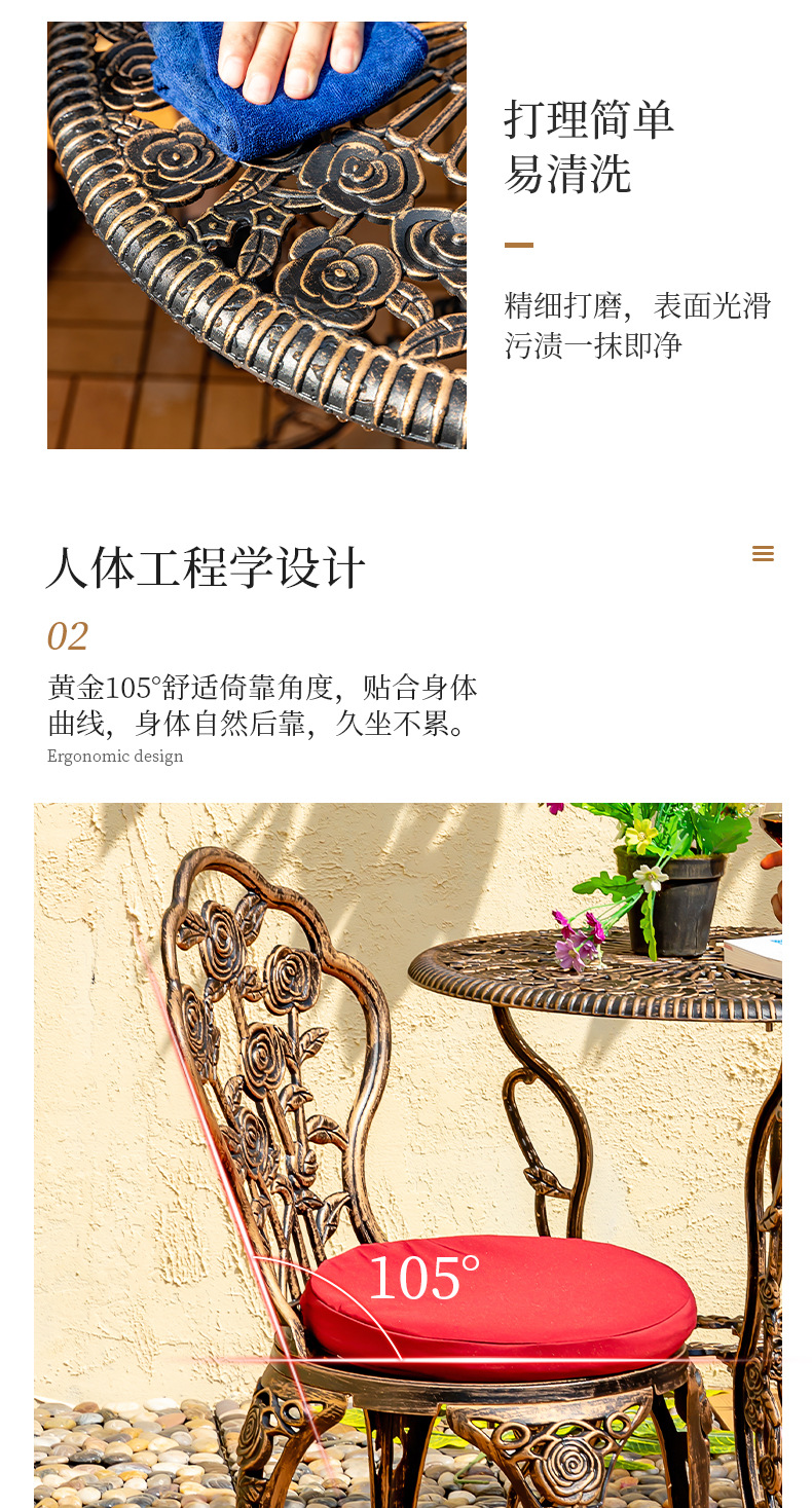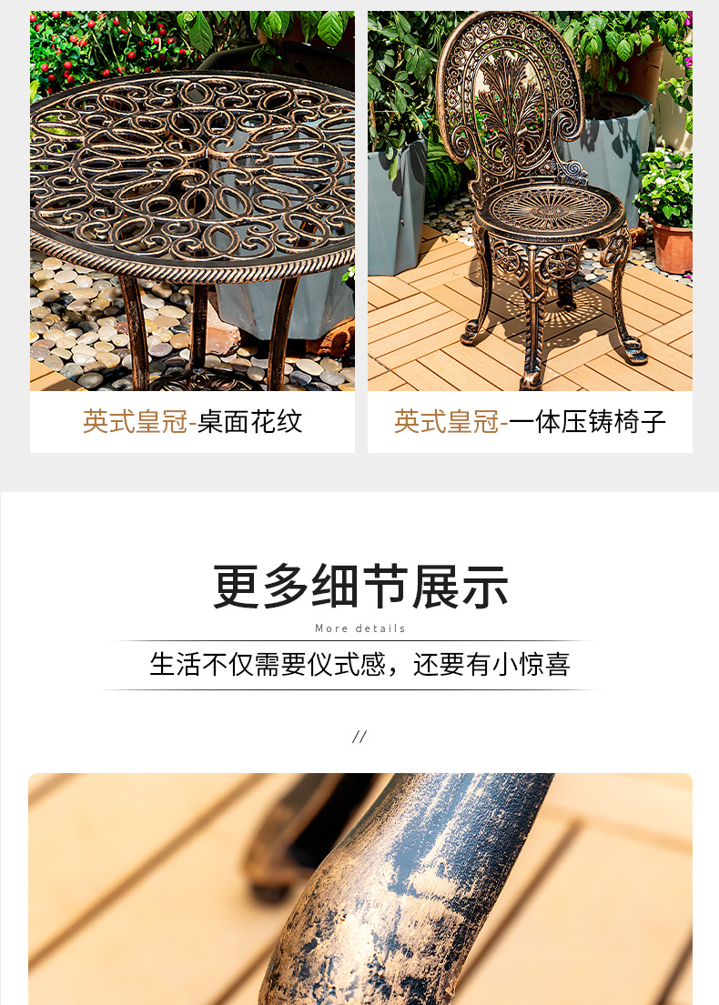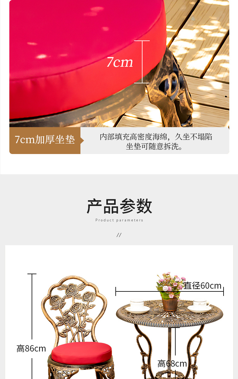 Ban công bàn ghế nhỏ ngoài trời sân vườn phong cách Châu Âu nhôm đúc chống mưa ngoài trời bằng sắt rèn sân thượng giải trí bàn cà phê bộ ba món được thiết kế để tạo điểm nhấn cho khu vực sân vườn, ban công hoặc không gian ngoài trời.