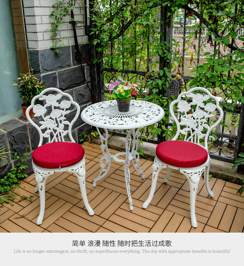 Ban công bàn ghế nhỏ ngoài trời sân vườn phong cách Châu Âu nhôm đúc chống mưa ngoài trời bằng sắt rèn sân thượng giải trí bàn cà phê bộ ba món