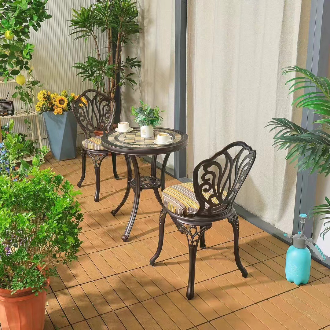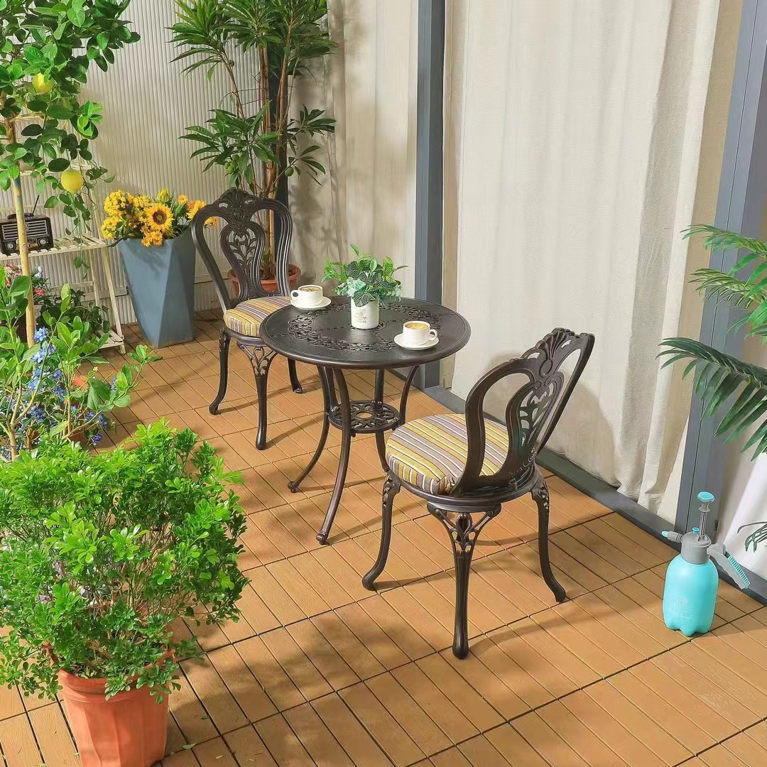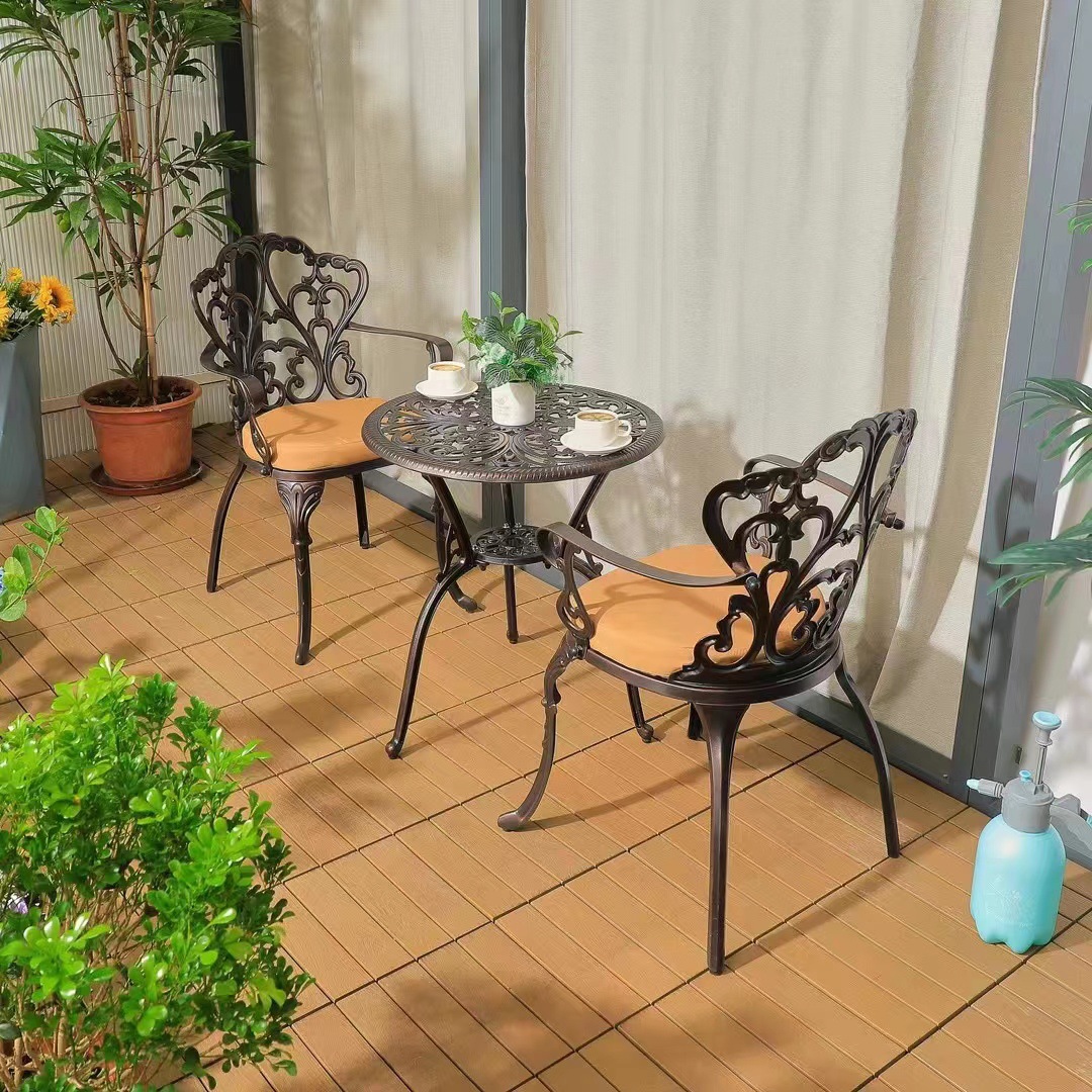 Ban công ngoài trời bàn ghế nhỏ trong nhà và ngoài trời biệt thự sân vườn giải trí bàn cà phê bằng nhôm đúc kết hợp ba hoặc năm món đồ nội thất được thiết kế để tạo điểm nhấn cho khu vực sân vườn, ban công hoặc không gian ngoài trời.