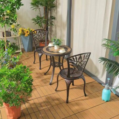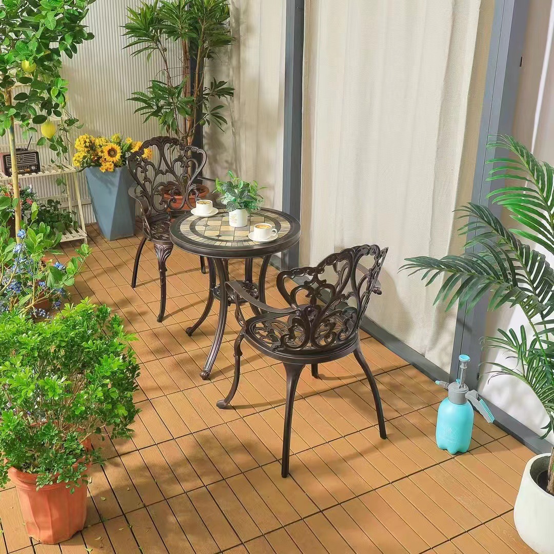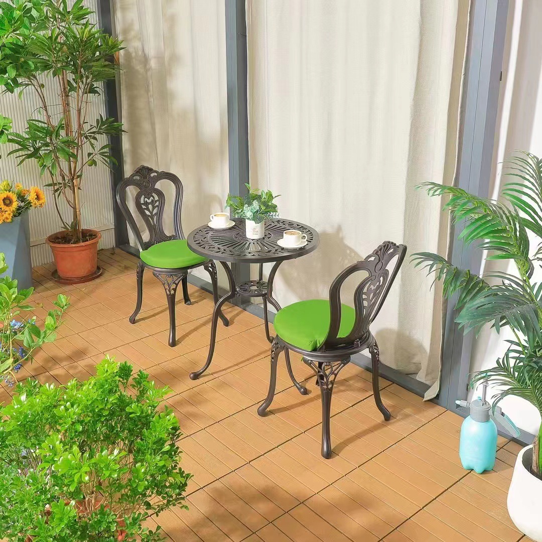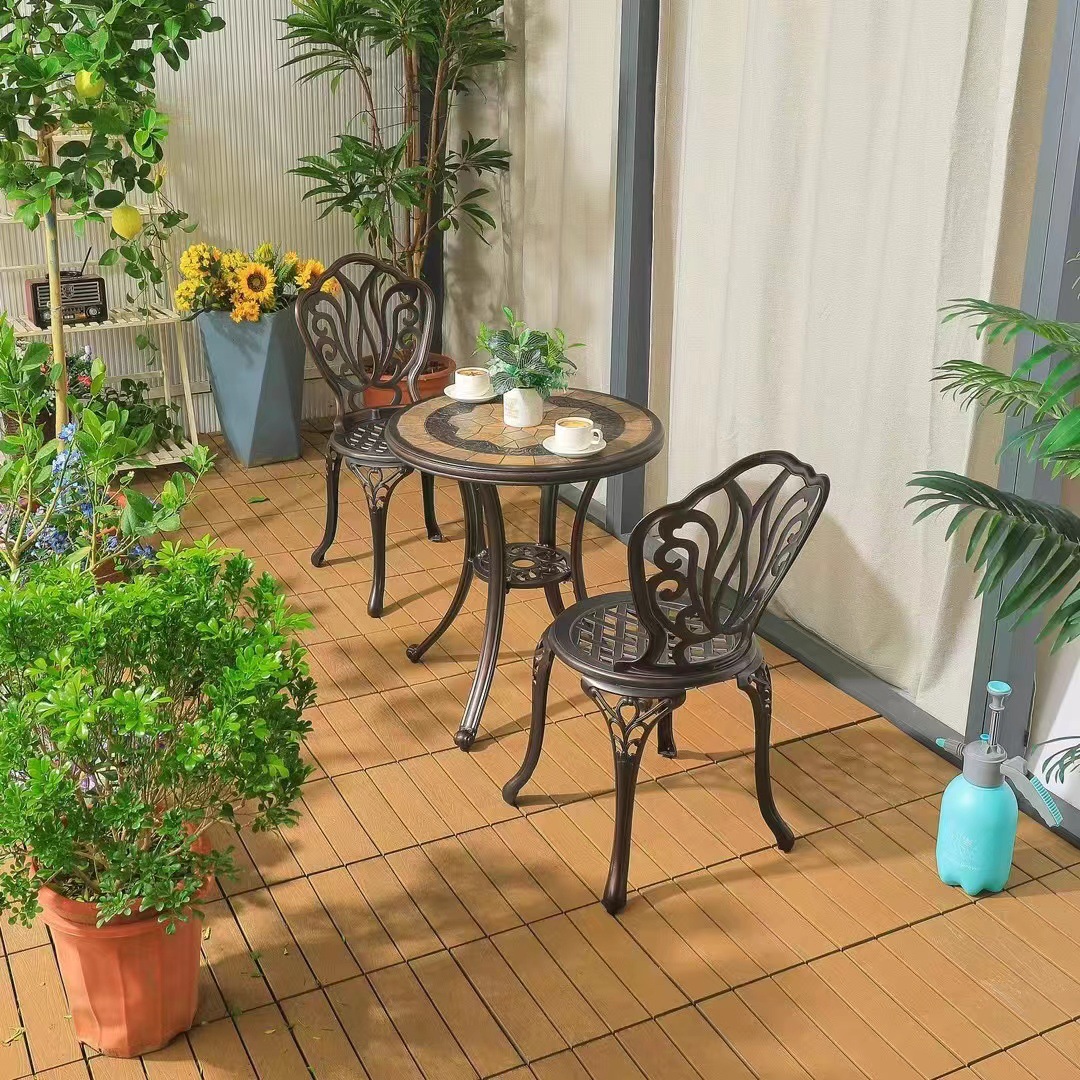Ban công ngoài trời bàn ghế nhỏ trong nhà và ngoài trời biệt thự sân vườn giải trí bàn cà phê bằng nhôm đúc kết hợp ba hoặc năm món đồ nội thất được thiết kế để tạo điểm nhấn cho khu vực sân vườn, ban công hoặc không gian ngoài trời.