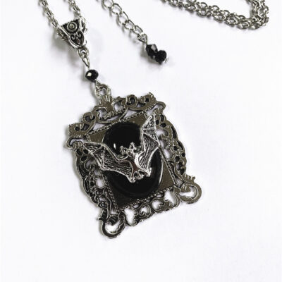 Bán Đá Quý Màu Đen Mặt Dây Chuyền Retro Gothic Pha Lê Bát Vòng Cổ Handmade Tinh Tế Mặt Dây Chuyền Cá Tính Punk
