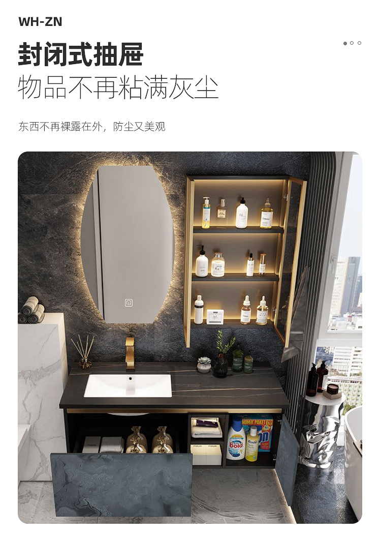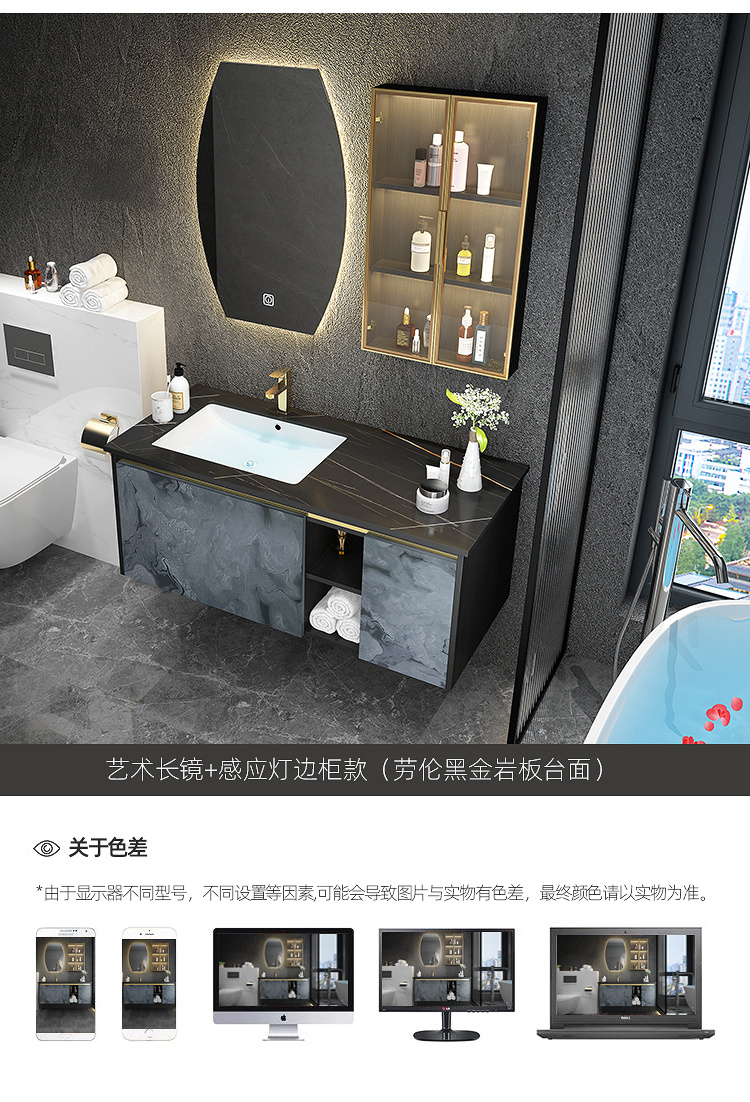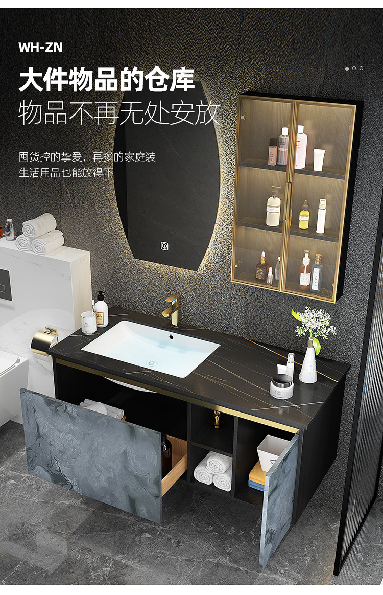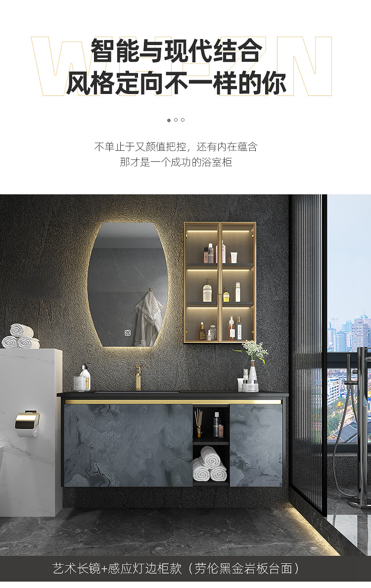 Bàn đá tủ phòng tắm kết hợp ánh sáng sang trọng đơn giản chậu rửa phòng tắm chậu rửa bàn trang điểm tủ gương thông minh