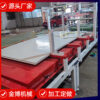 本生产线采用专业精密刮胶涂胶机,专业用于平面板贴面,多层板粘合,适用于高光贴面板材生产,橱柜及家具门板,木塑板及pvc发泡板粘合等。覆面材料:高光膜、亚克力、防火板、PVC板及金属板。PE、PET、PVC膜、单张木皮、MDF薄板等。板材基材:MDF板、刨花板、多层夹板、发泡材料、蜂窝门芯板,铁皮等使用胶水:PUR反应型聚氨酯热熔胶使用用户:家具、橱柜、平板门制造企业、新型建材厂、高档装饰厂、板材加工厂。