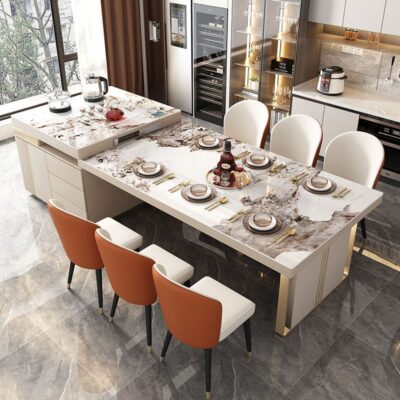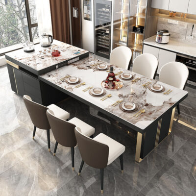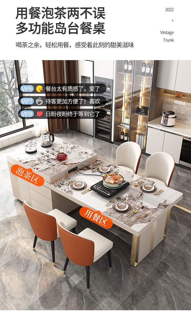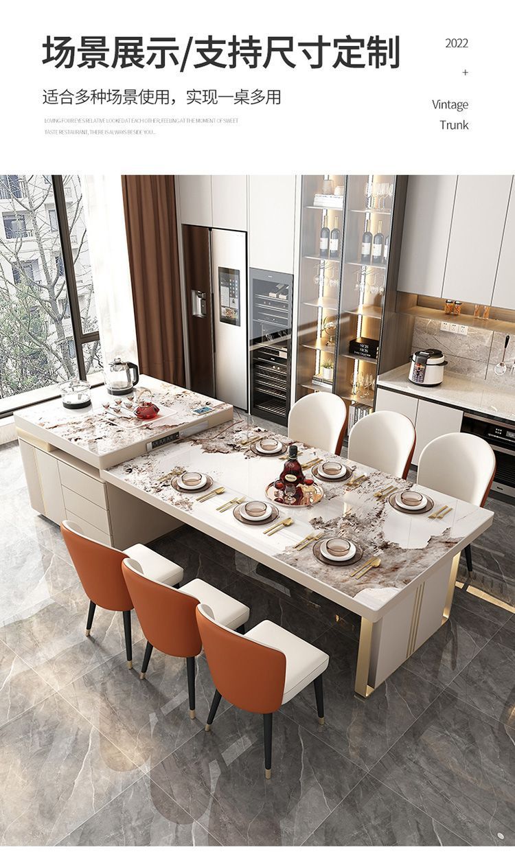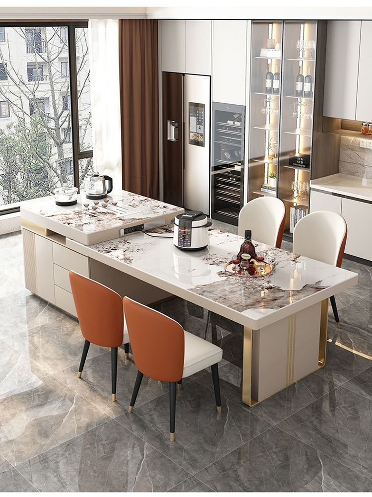 Bàn đảo đá phiến bàn ăn và ghế bàn trà tích hợp đèn thu vào nhà sang trọng quy mô lớn đa chức năng bảng hướng dẫn nhà bếp