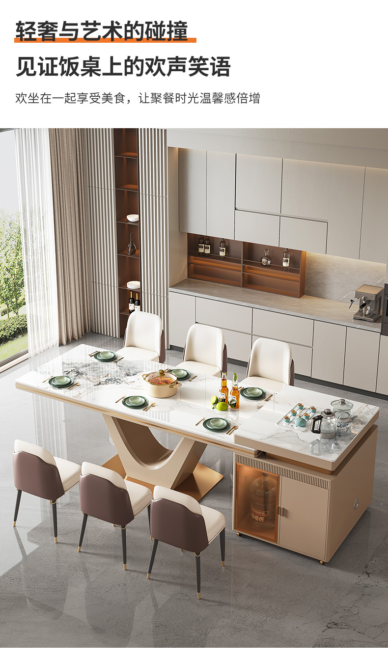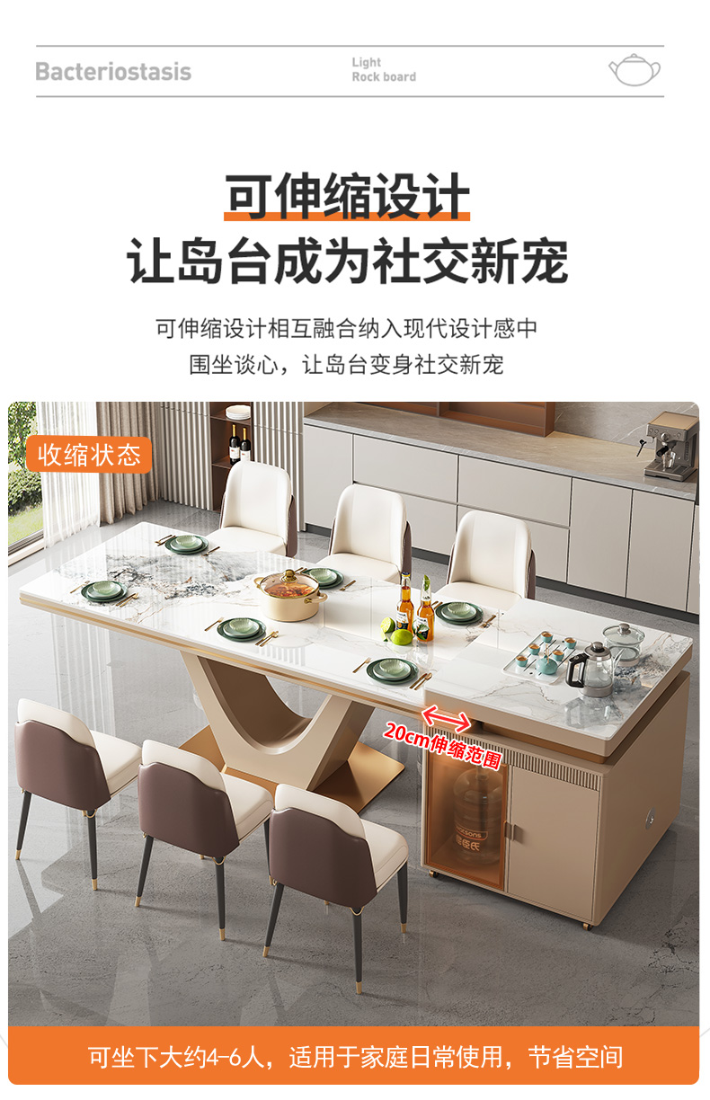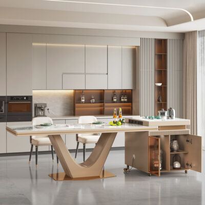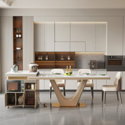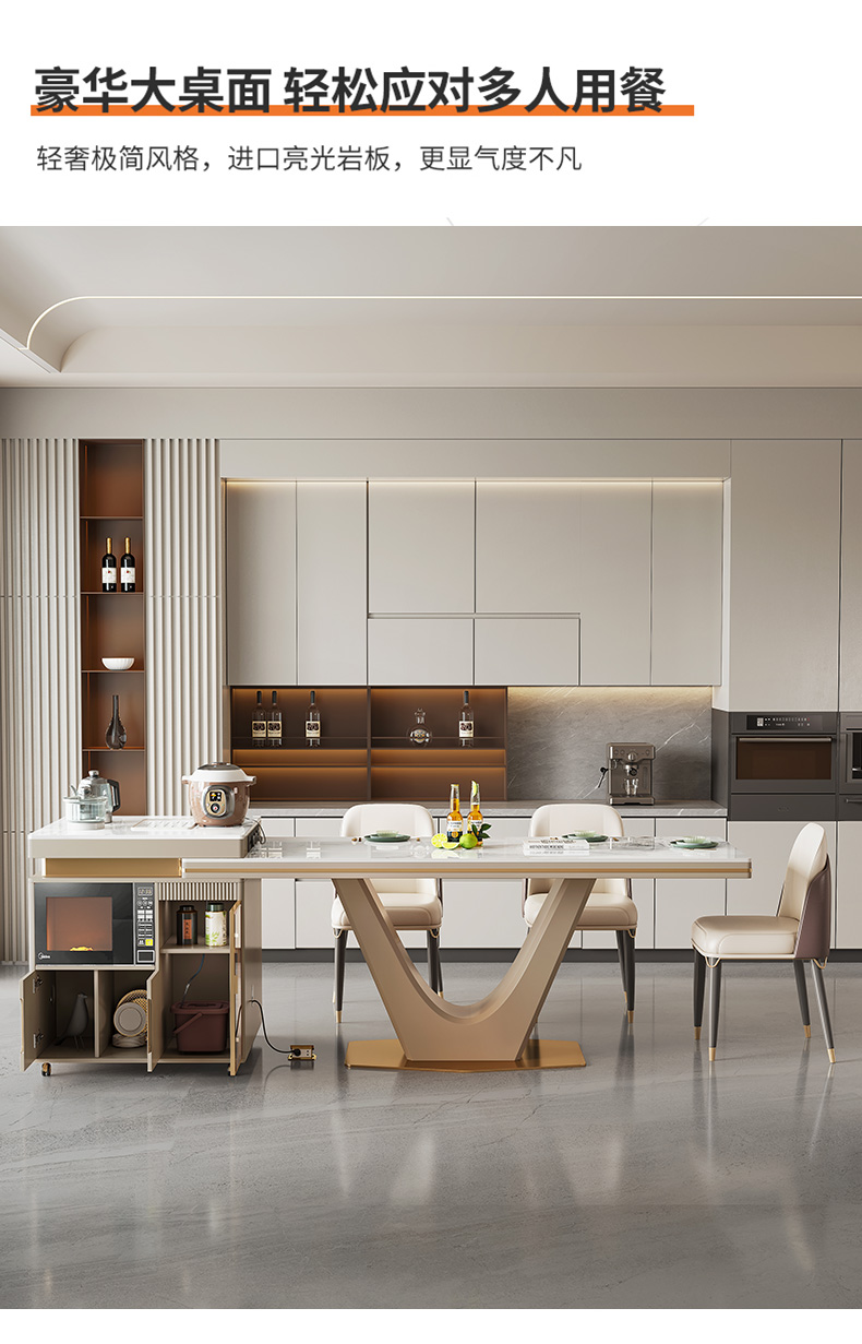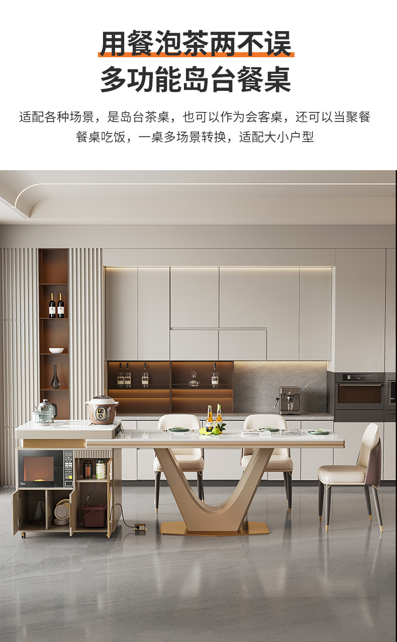 Bàn đảo được tích hợp di động hiện đại đa năng gia đình có bếp từ lò vi sóng ánh sáng mặt đá sang trọng chính giữa bàn đảo