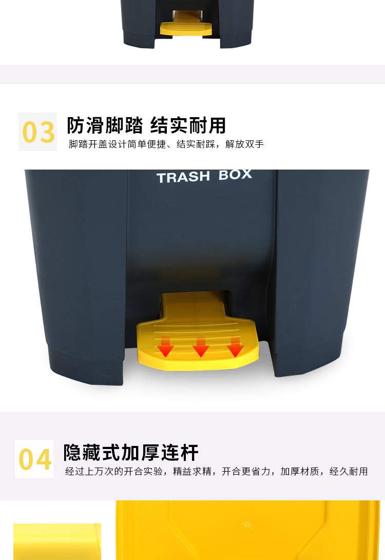 Bàn đạp chân nhà bếp phân loại rác thùng rác phục vụ thương mại lớn ngoài trời có mái che nhà bếp hộ gia đình công suất lớn bàn đạp chân là lựa chọn lý tưởng cho không gian công cộng, sân vườn hoặc khu đô thị. Sản phẩm giúp nâng cao hình ảnh chuyên nghiệp và sạch đẹp cho môi trường sống.
