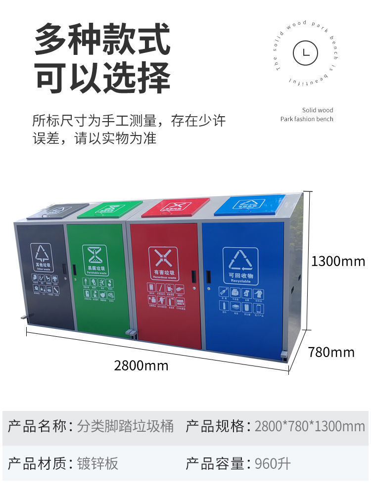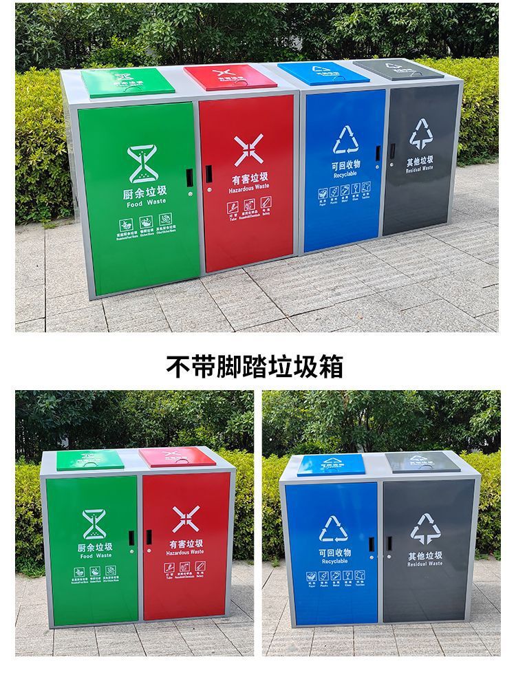 Bàn đạp ngoài trời thùng rác phân loại lớn tủ 4 phân loại phòng rác vệ sinh công viên trường học cộng đồng tài sản