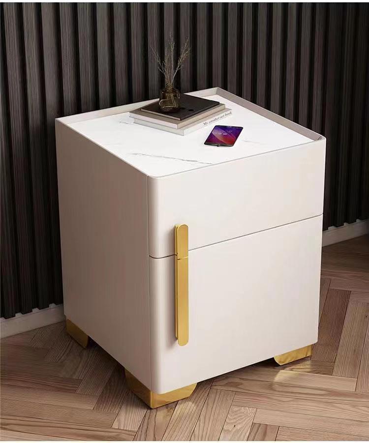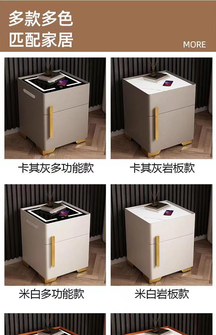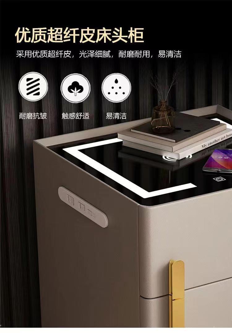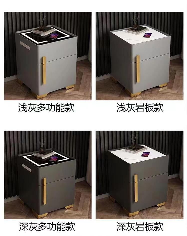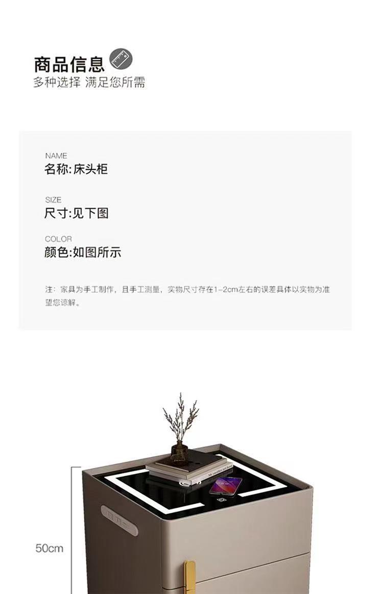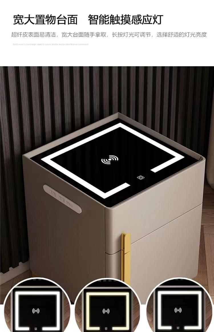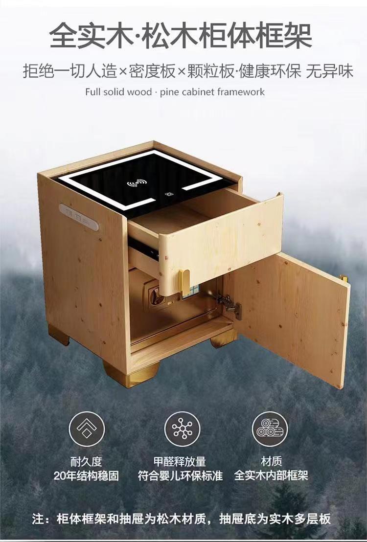 Bàn đầu giường thông minh bằng gỗ nguyên khối an toàn Tủ đầu giường đa năng có đèn sạc không dây két sắt ngăn kéo sang trọng