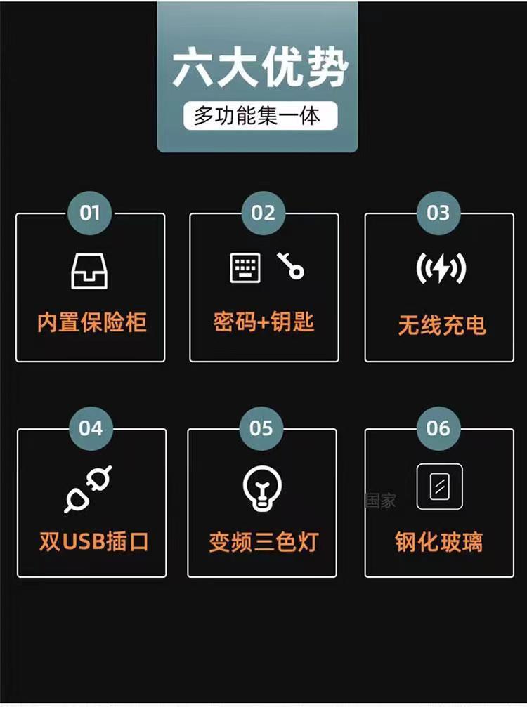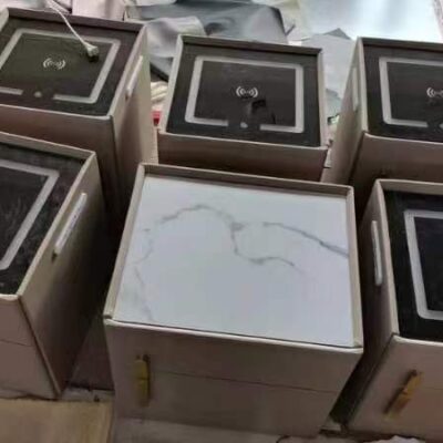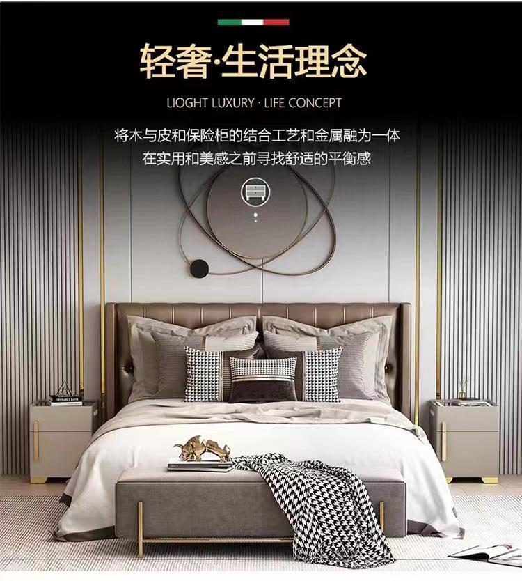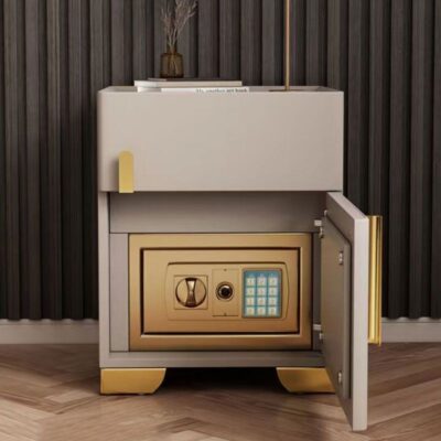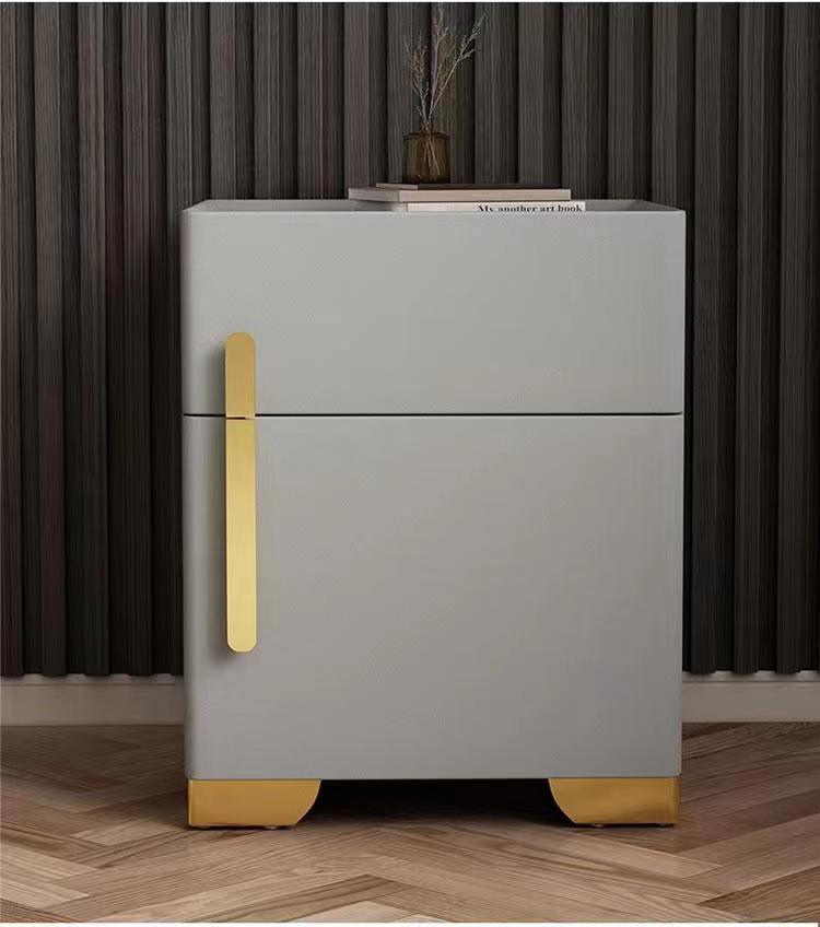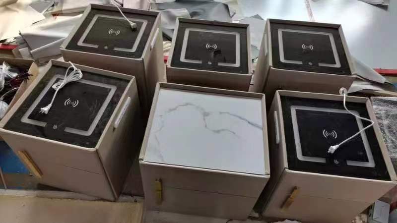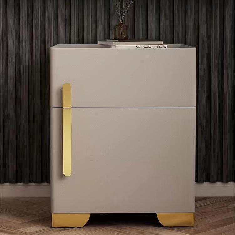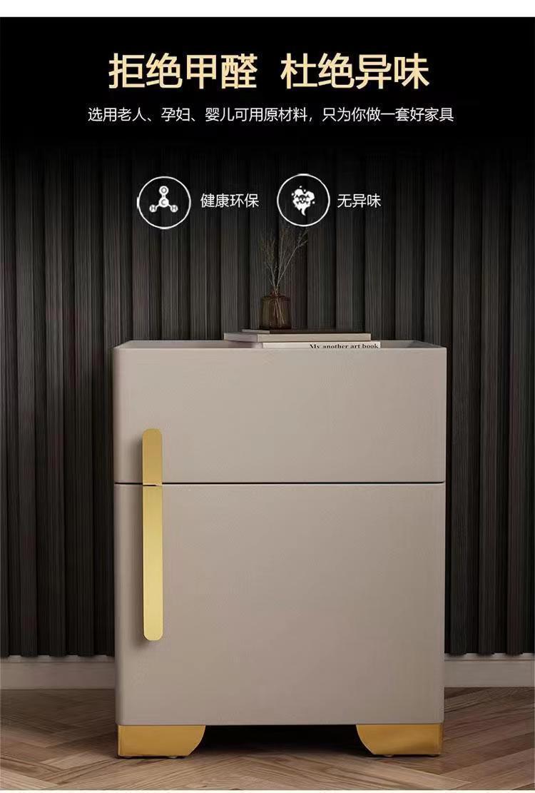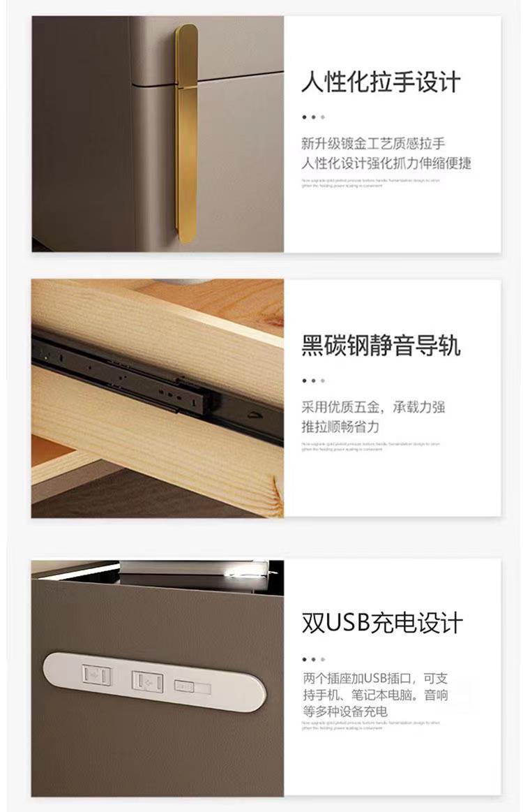 Bàn đầu giường thông minh bằng gỗ nguyên khối an toàn Tủ đầu giường đa năng có đèn sạc không dây két sắt ngăn kéo sang trọng