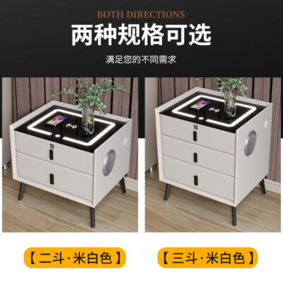 Bàn đầu giường thông minh bằng gỗ nguyên khối phòng ngủ tối giản nhỏ phong cách Ý tối giản internet người nổi tiếng nhà sản xuất tủ đầu giường sạc không dây sáng tạo