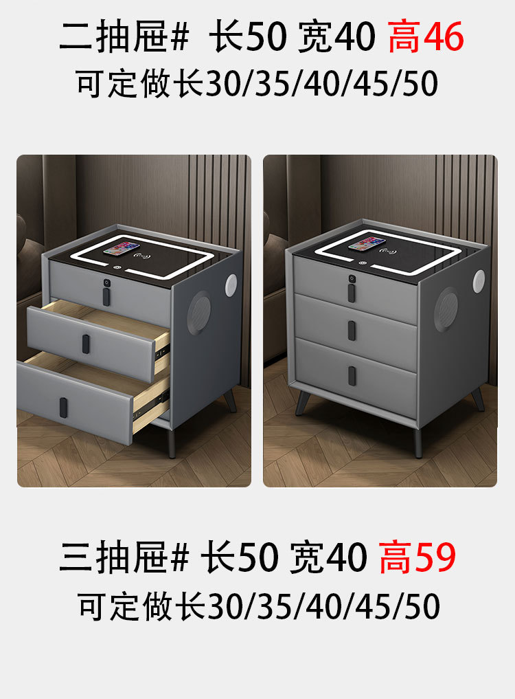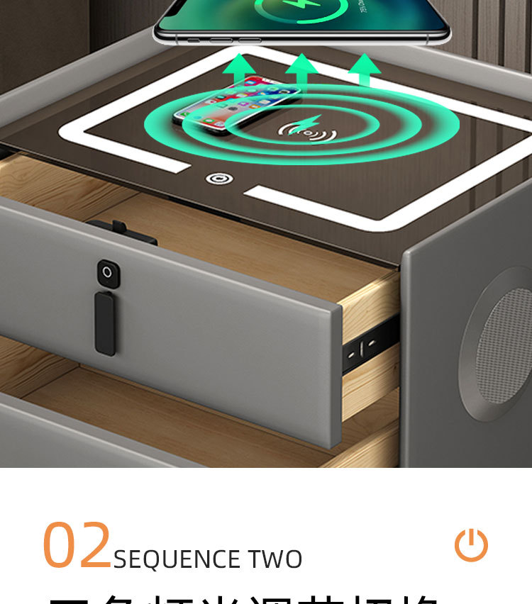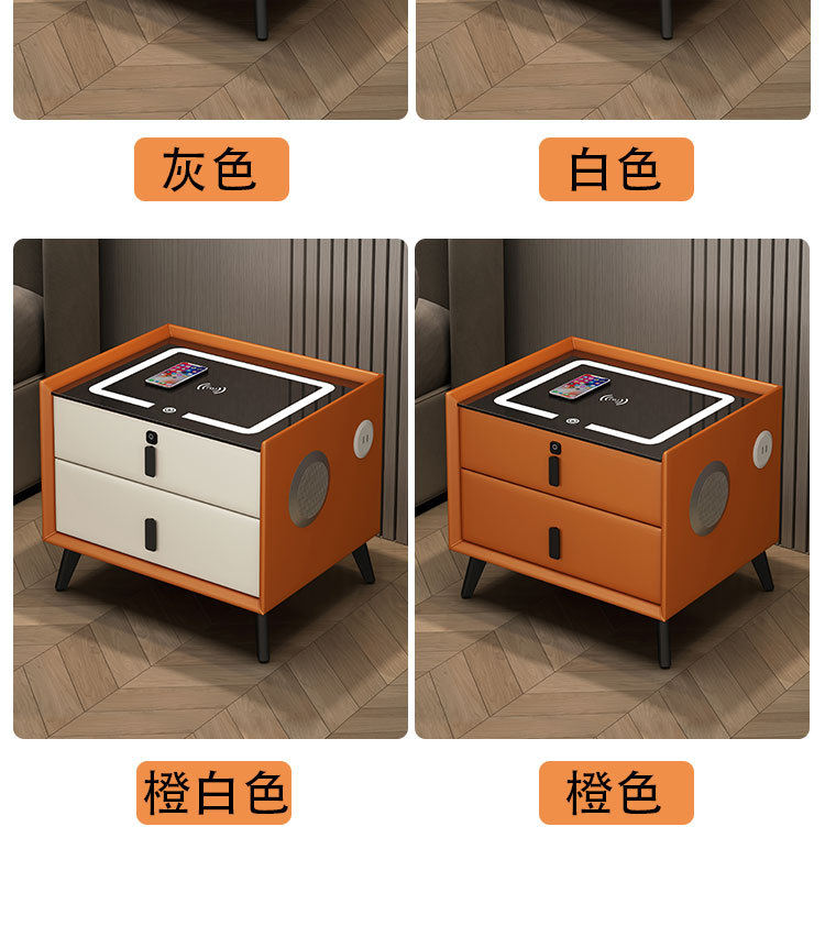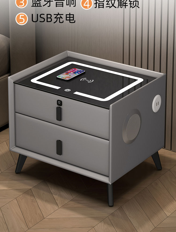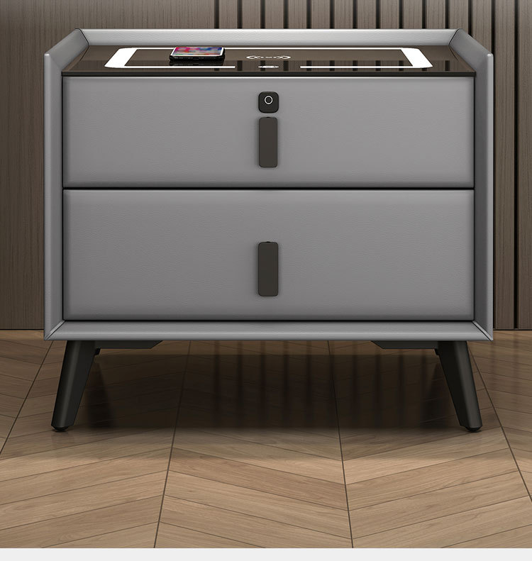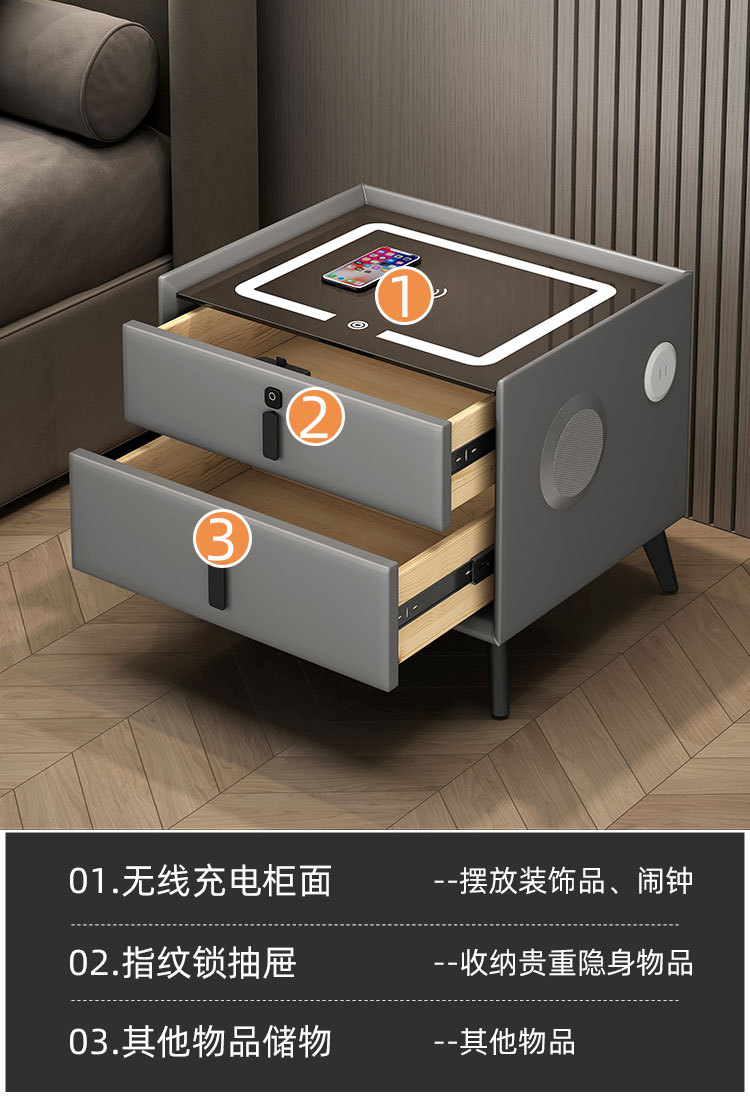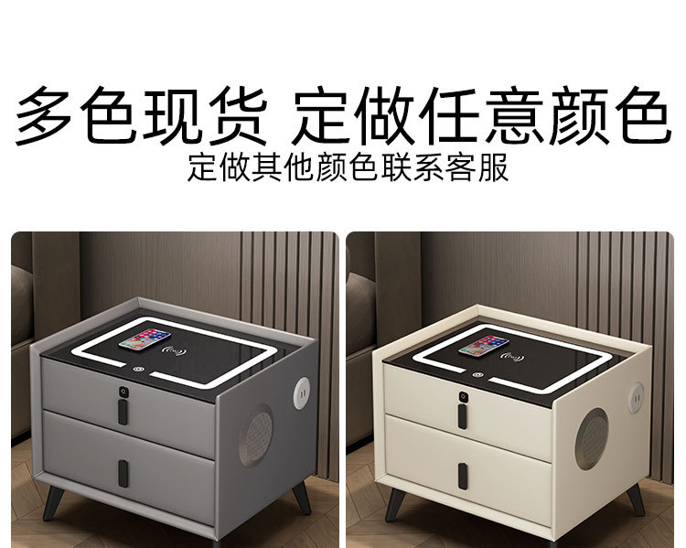 Bàn đầu giường thông minh bằng gỗ nguyên khối phòng ngủ tối giản nhỏ phong cách Ý tối giản internet người nổi tiếng nhà sản xuất tủ đầu giường sạc không dây sáng tạo
