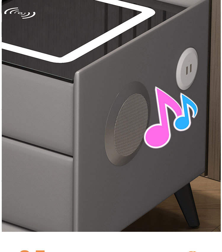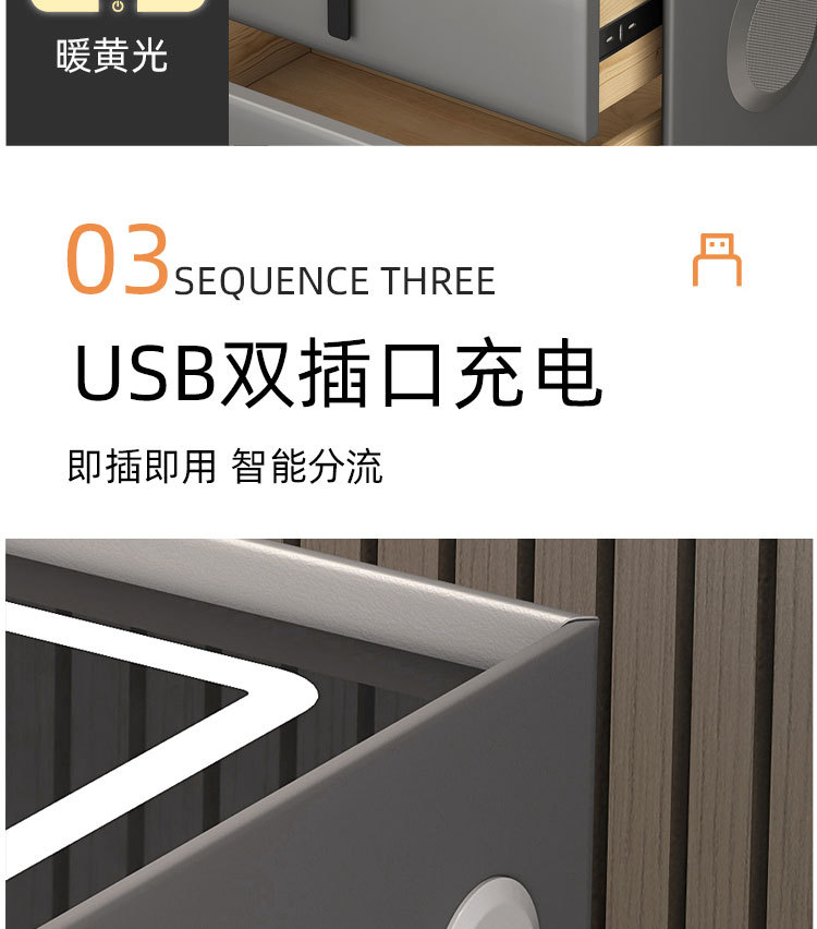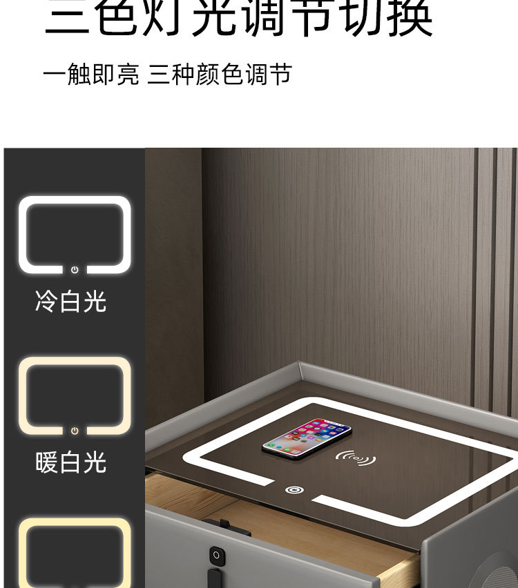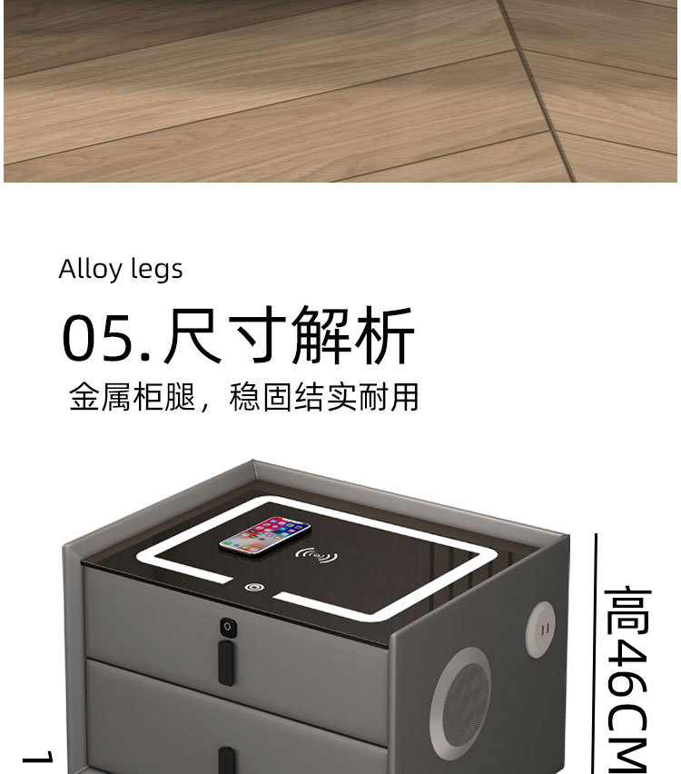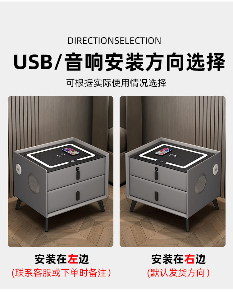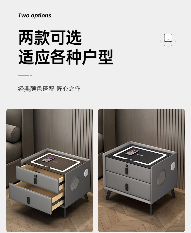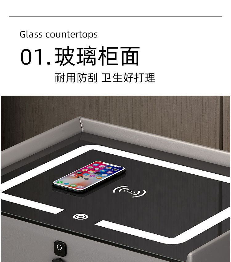 Bàn đầu giường thông minh bằng gỗ nguyên khối phòng ngủ tối giản nhỏ phong cách Ý tối giản internet người nổi tiếng nhà sản xuất tủ đầu giường sạc không dây sáng tạo