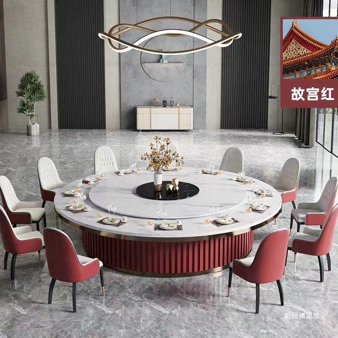 Bàn điện khách sạn hộ gia đình tấm đá bàn ăn lẩu bàn doanh nhân 12 người 16 người đá cẩm thạch bàn tròn lớn hộ gia đình 10 người