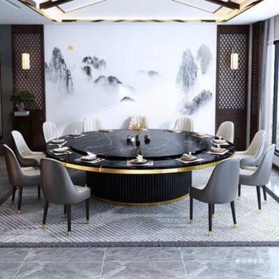 Bàn điện khách sạn hộ gia đình tấm đá bàn ăn lẩu bàn doanh nhân 12 người 16 người đá cẩm thạch bàn tròn lớn hộ gia đình 10 người là sản phẩm nổi bật trong dòng bàn ăn nhập khẩu, thiết kế hiện đại và sang trọng, phù hợp với nhiều không gian nội thất cao cấp.