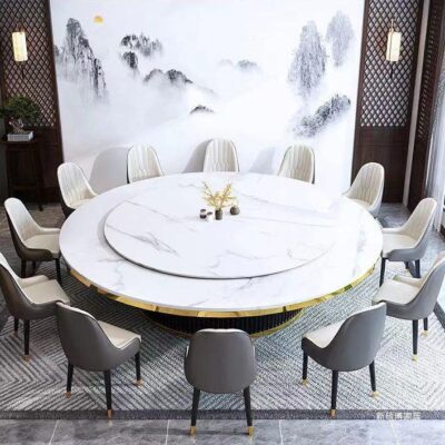 Bàn điện khách sạn hộ gia đình tấm đá bàn ăn lẩu bàn doanh nhân 12 người 16 người đá cẩm thạch bàn tròn lớn hộ gia đình 10 người – Bàn ăn nhập khẩu cao cấp
