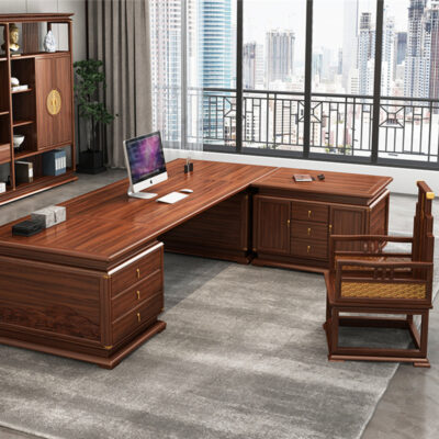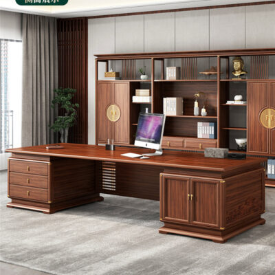 Bàn điều hành kiểu Trung Quốc mới Bàn làm việc của ông chủ Bàn văn phòng bằng gỗ nguyên khối Bàn làm việc bằng gỗ mun Tủ sách Bàn tổng thống Nội thất văn phòng