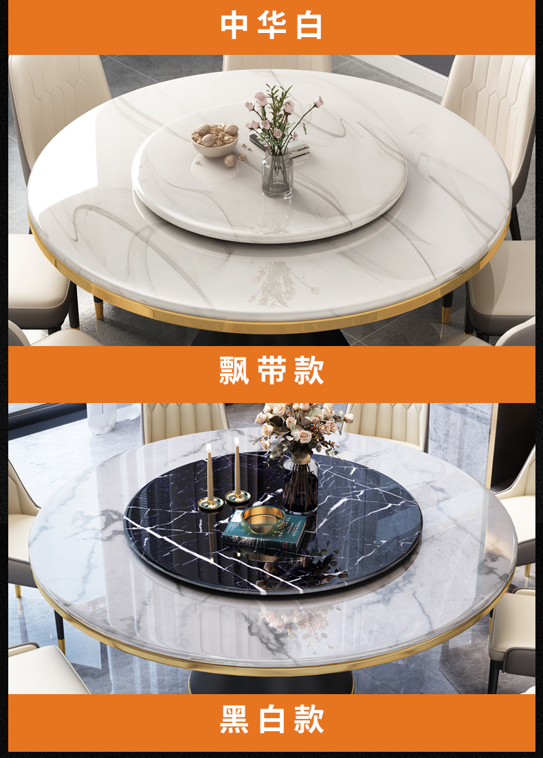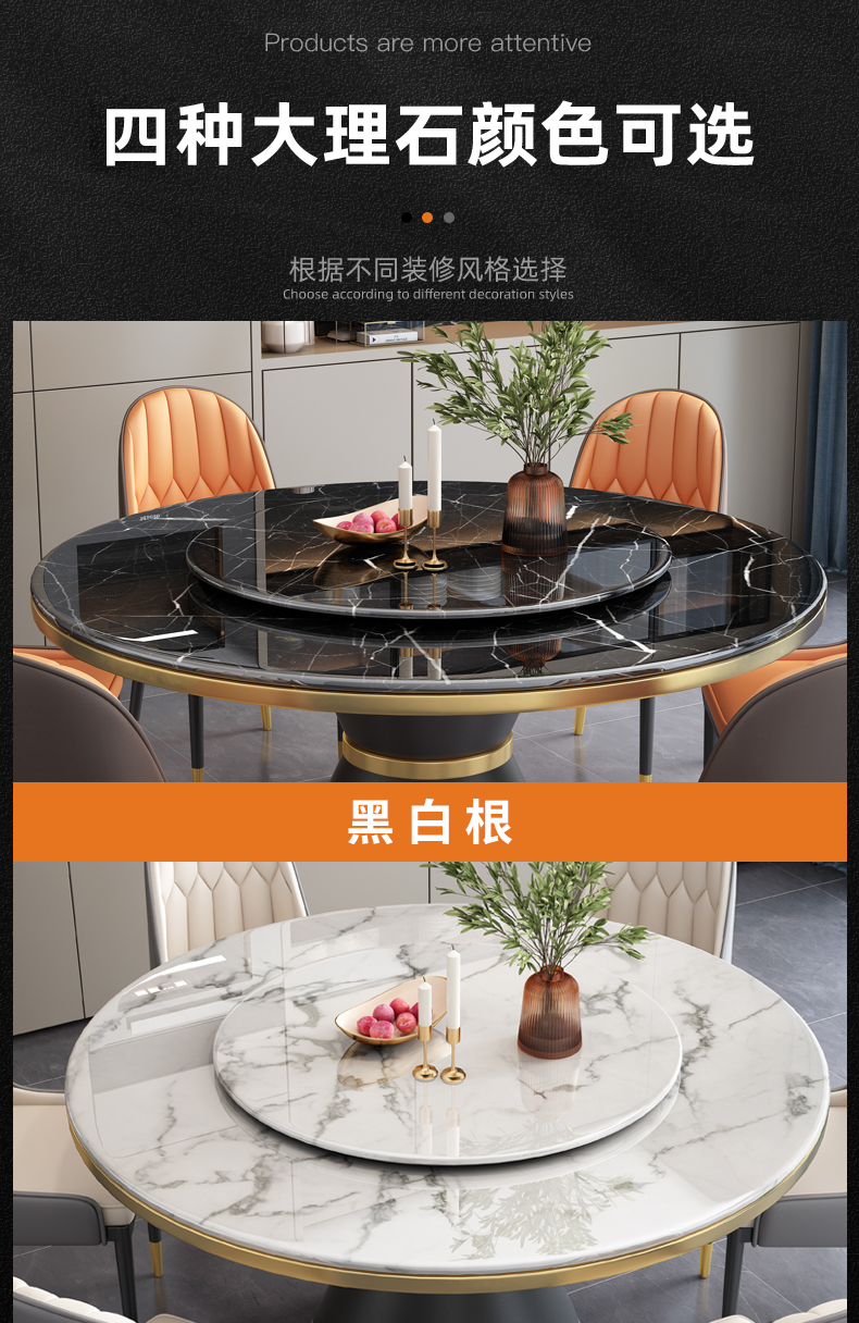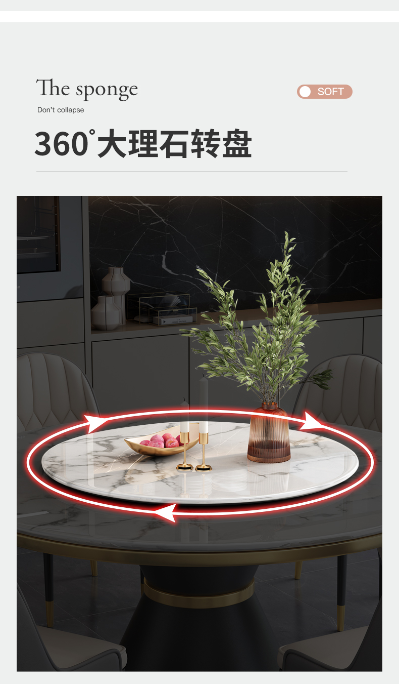 Bàn ghế ăn bằng đá cẩm thạch cao cấp ánh sáng kim loại kết hợp bàn tròn tối giản hiện đại hộ gia đình căn hộ nhỏ Bàn ăn tròn với bàn xoay – Bàn ăn nhập khẩu cao cấp