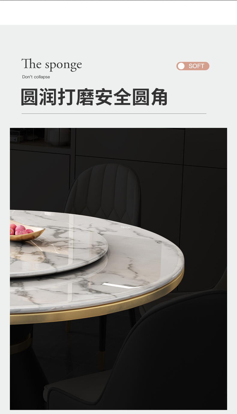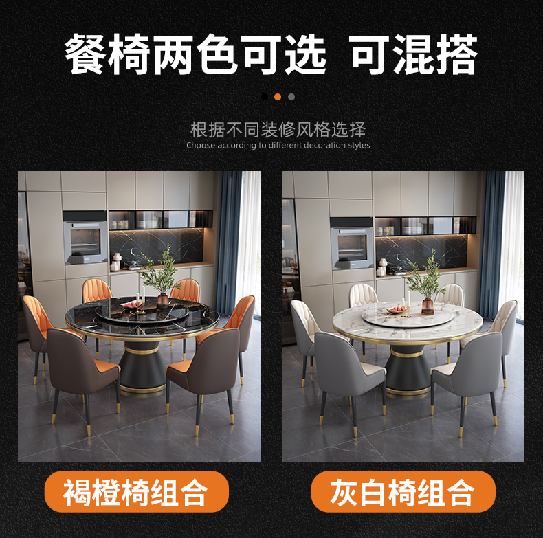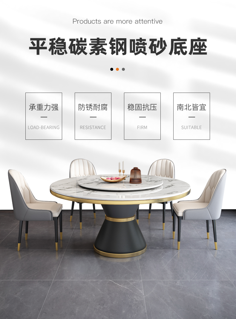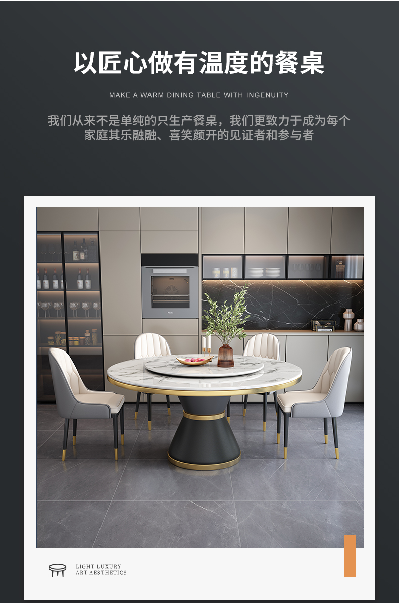 Bàn ghế ăn bằng đá cẩm thạch cao cấp ánh sáng kim loại kết hợp bàn tròn tối giản hiện đại hộ gia đình căn hộ nhỏ Bàn ăn tròn với bàn xoay – Bàn ăn nhập khẩu cao cấp