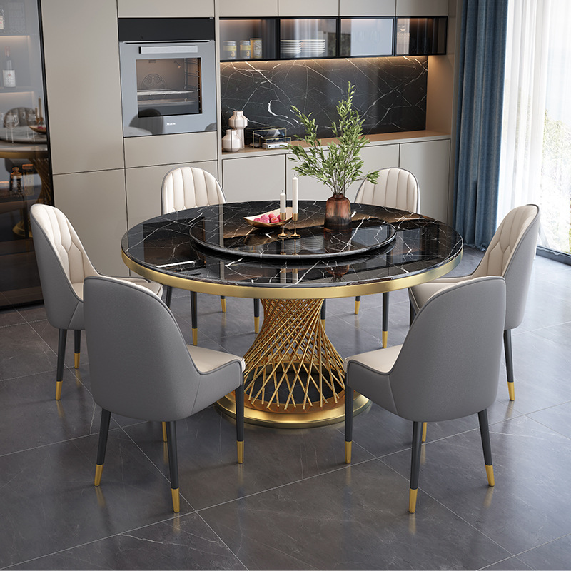 Bàn ghế ăn bằng đá cẩm thạch kết hợp hiện đại đơn giản trong nhà nhẹ nhàng bàn tròn sang trọng với bàn xoay đĩa đá bàn ghế xoay