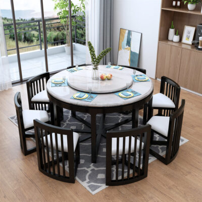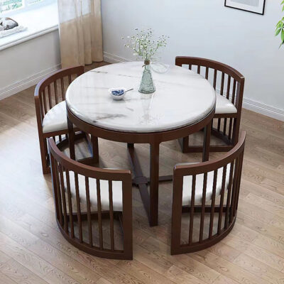 Bàn ghế ăn bằng đá cẩm thạch kết hợp tất cả bàn ăn bằng gỗ nguyên khối tại nhà căn hộ nhỏ đa chức năng vô hình bàn lưới bàn tròn nhà màu đỏ