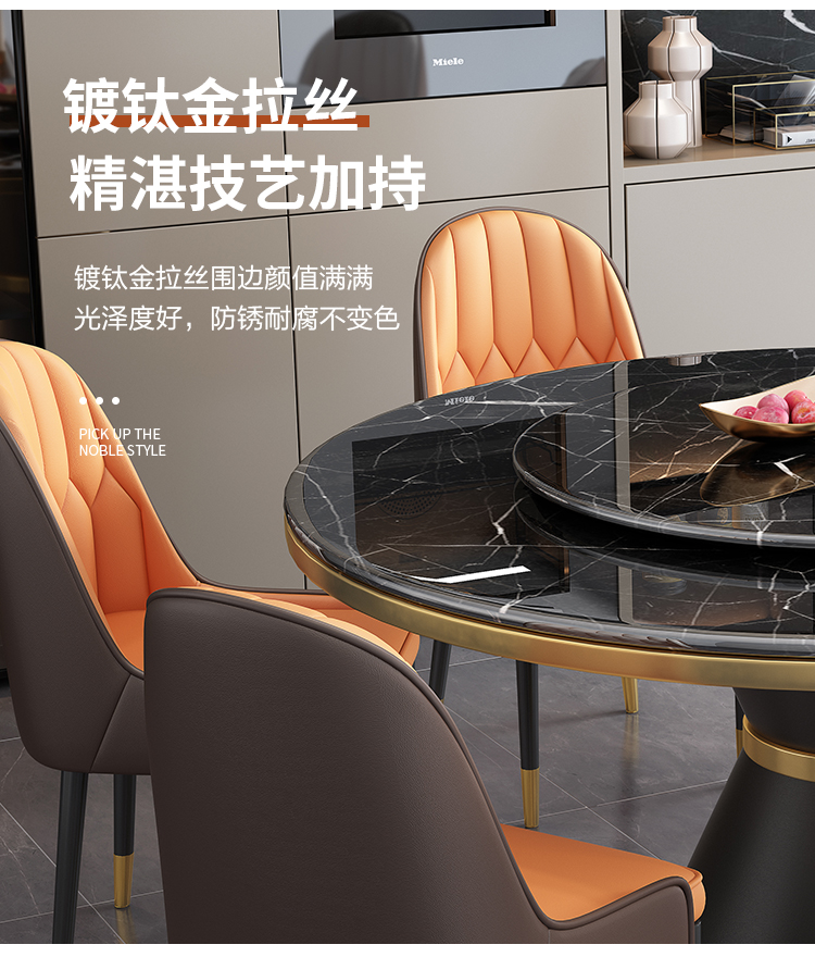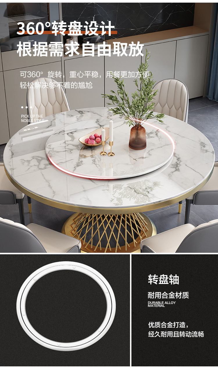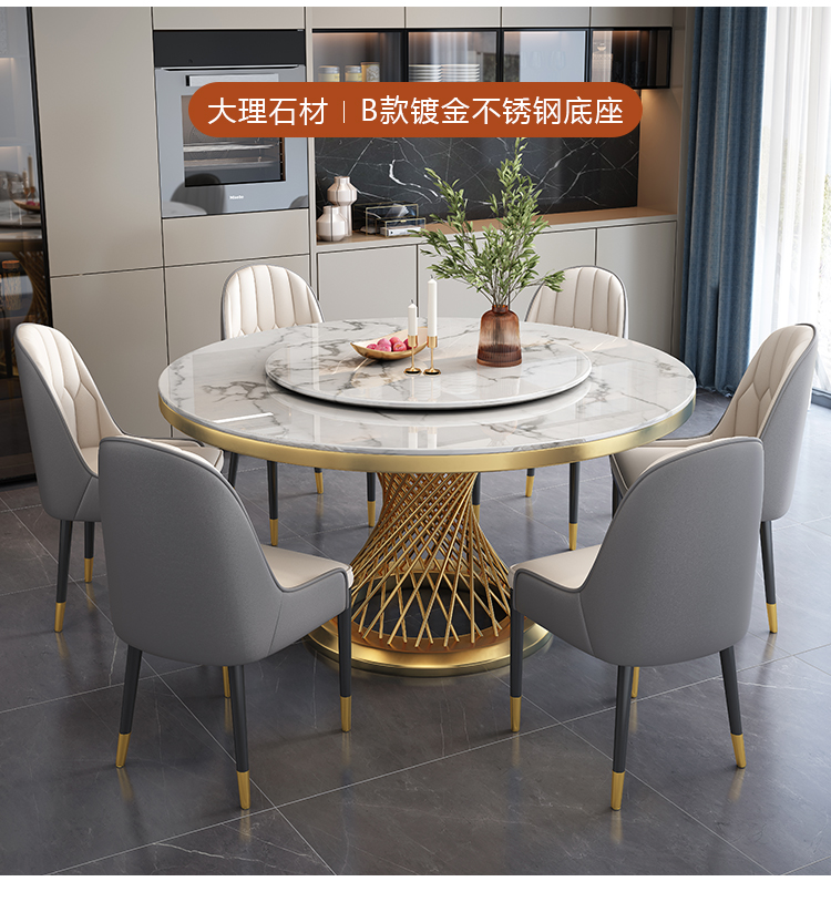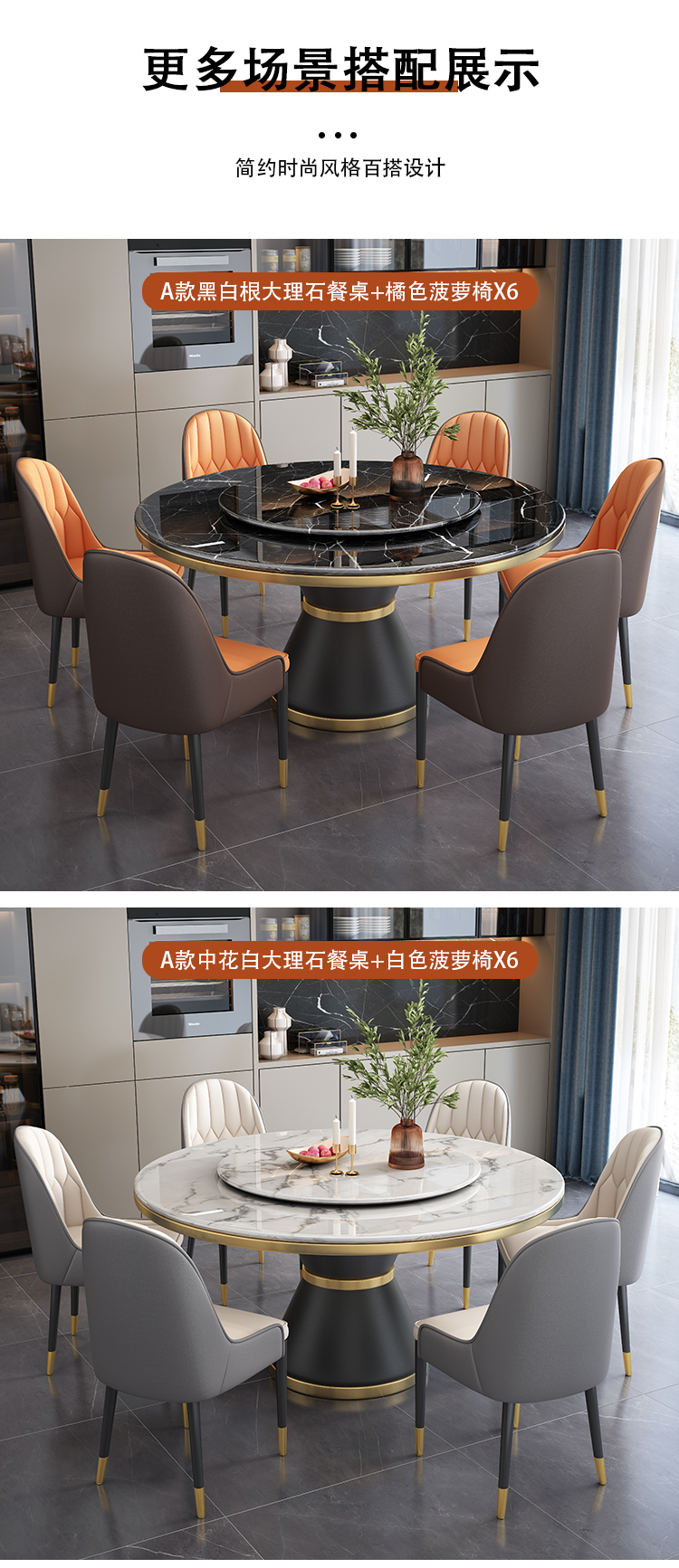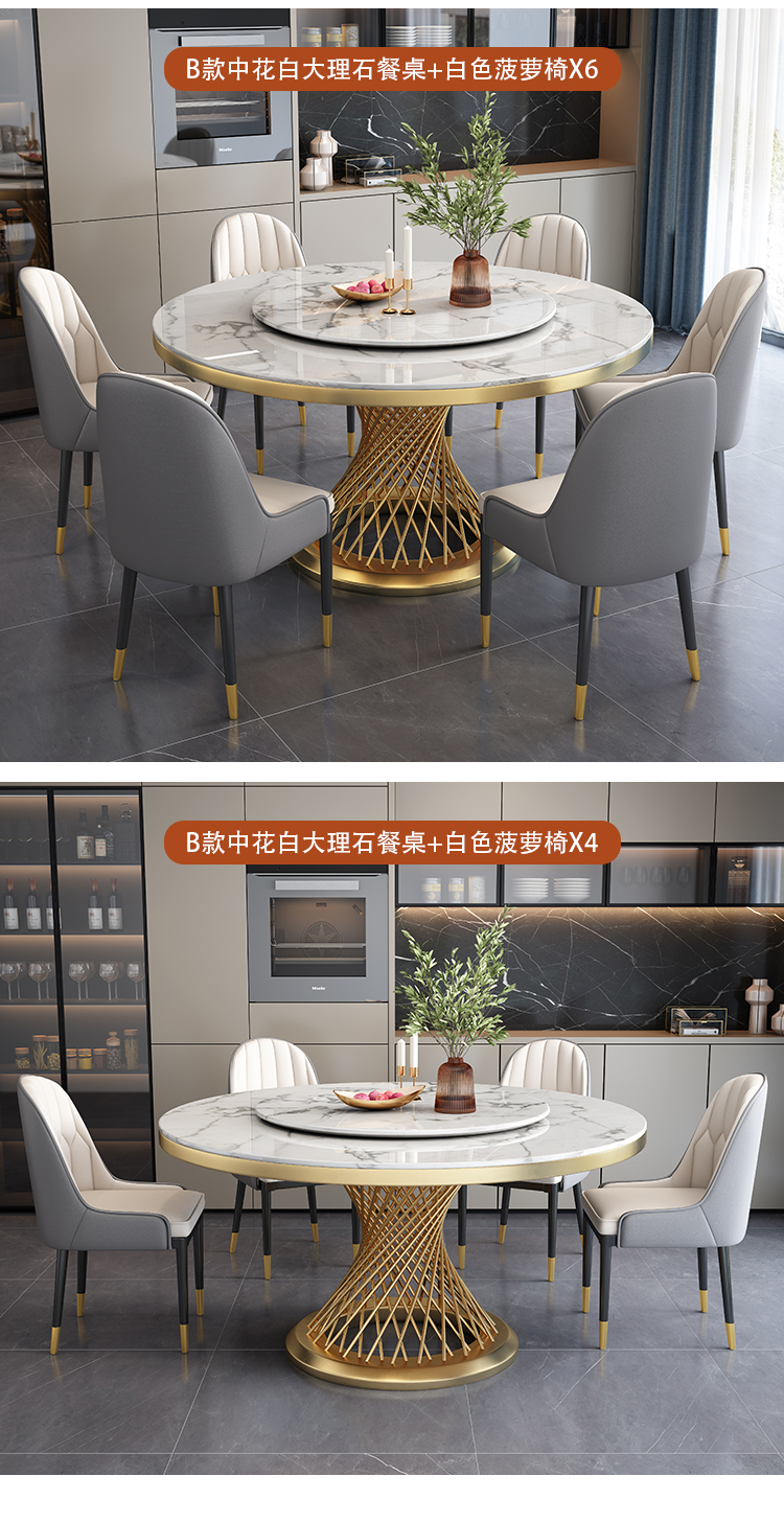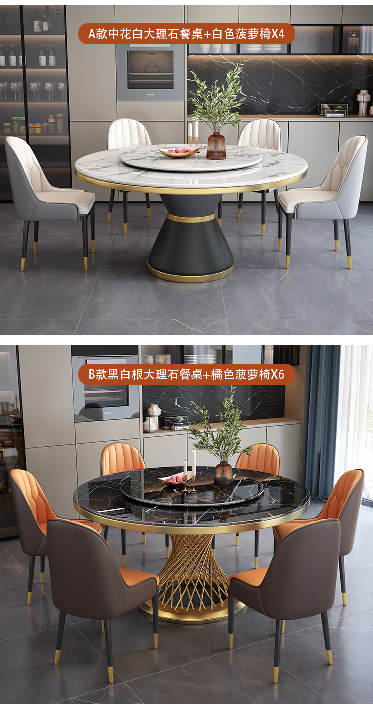 Bàn ghế ăn bằng đá cẩm thạch sang trọng nhẹ kết hợp bàn ăn tròn gia đình tối giản hiện đại với bàn xoay đá xoay bàn và ghế tròn – Bàn ăn nhập khẩu cao cấp