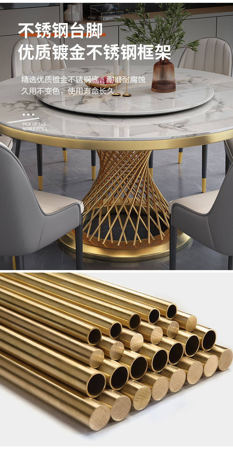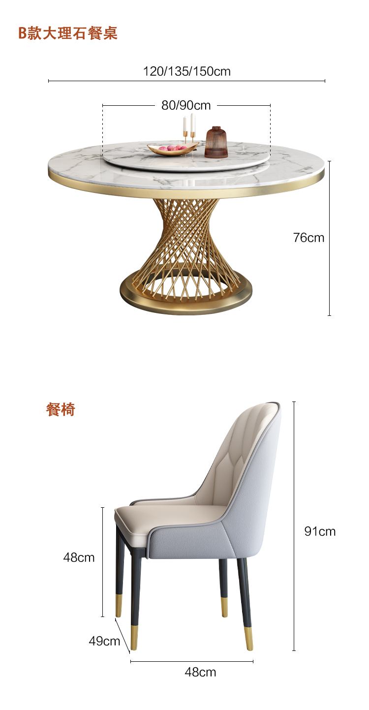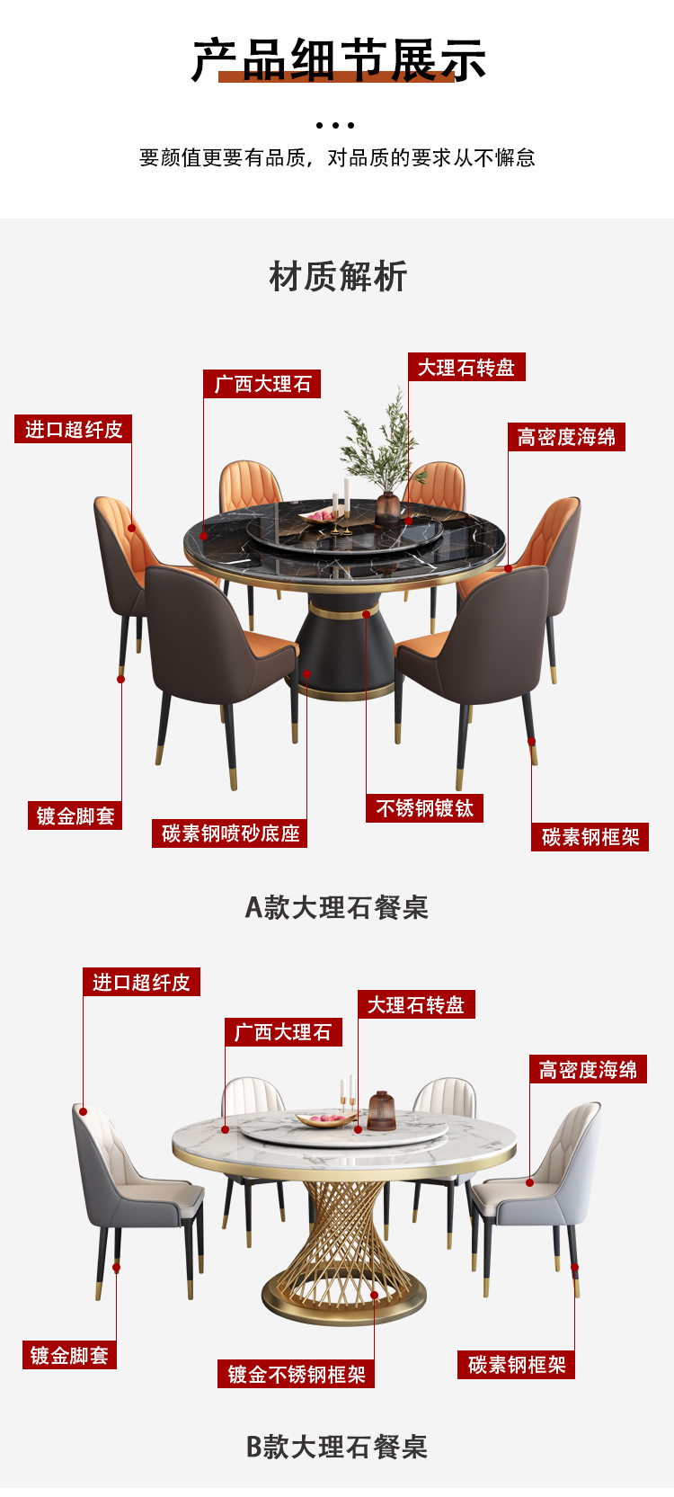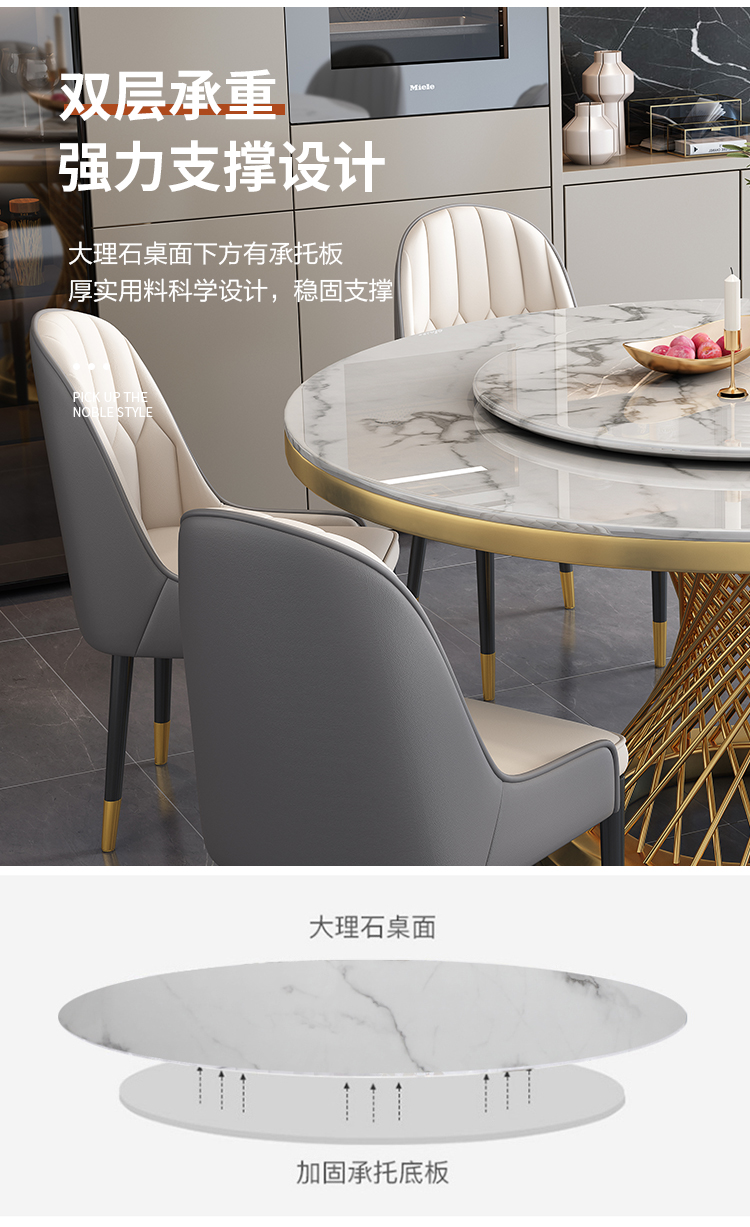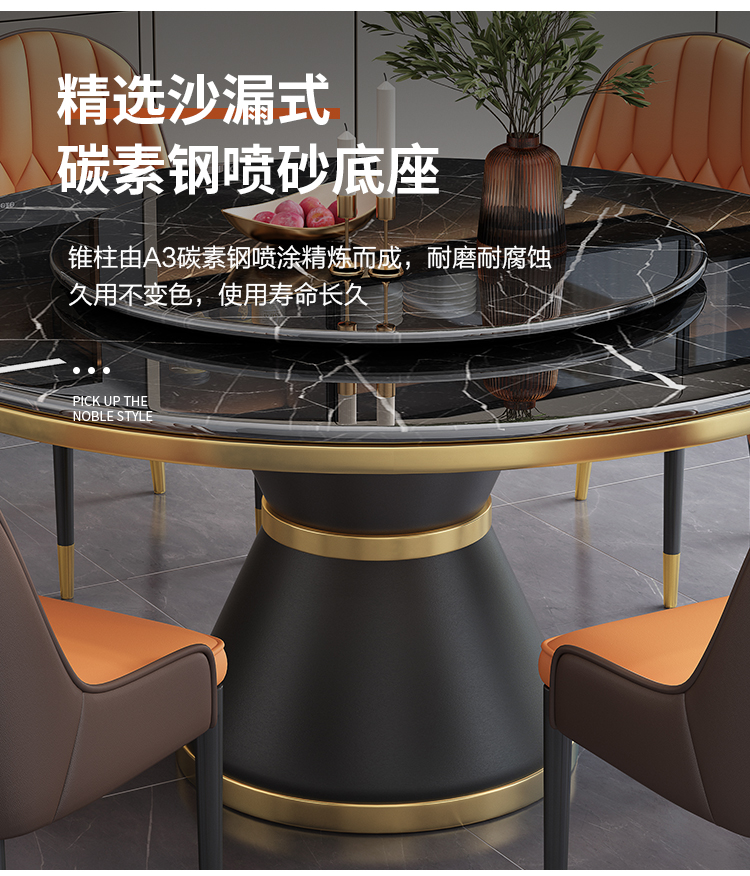 Bàn ghế ăn bằng đá cẩm thạch sang trọng nhẹ kết hợp bàn ăn tròn gia đình tối giản hiện đại với bàn xoay đá xoay bàn và ghế tròn – Bàn ăn nhập khẩu cao cấp
