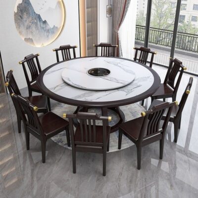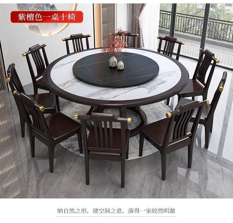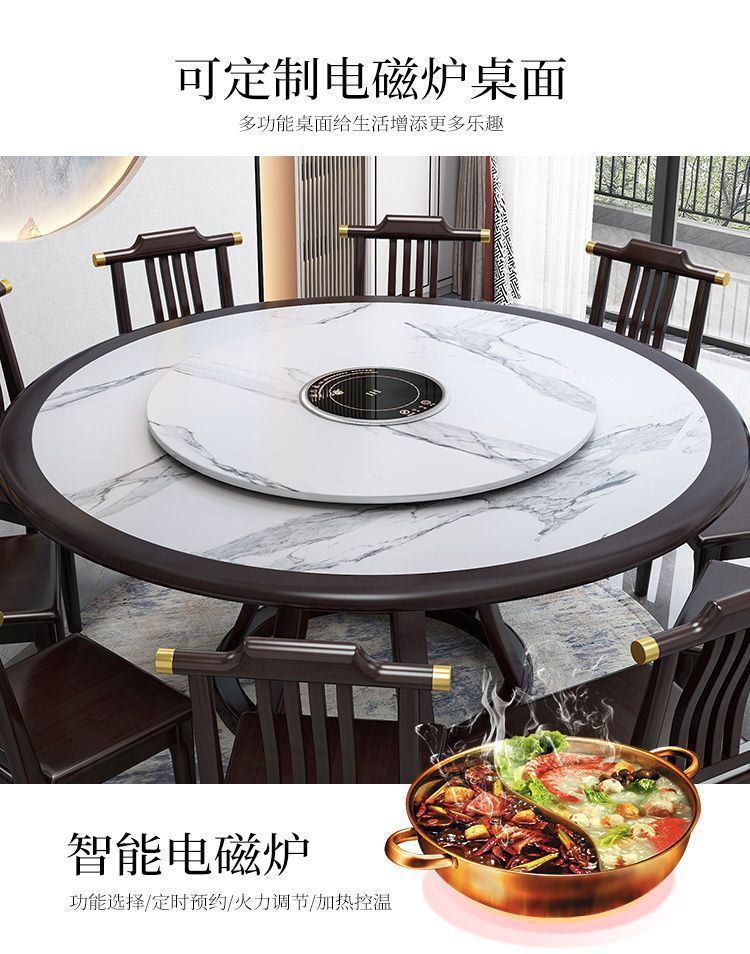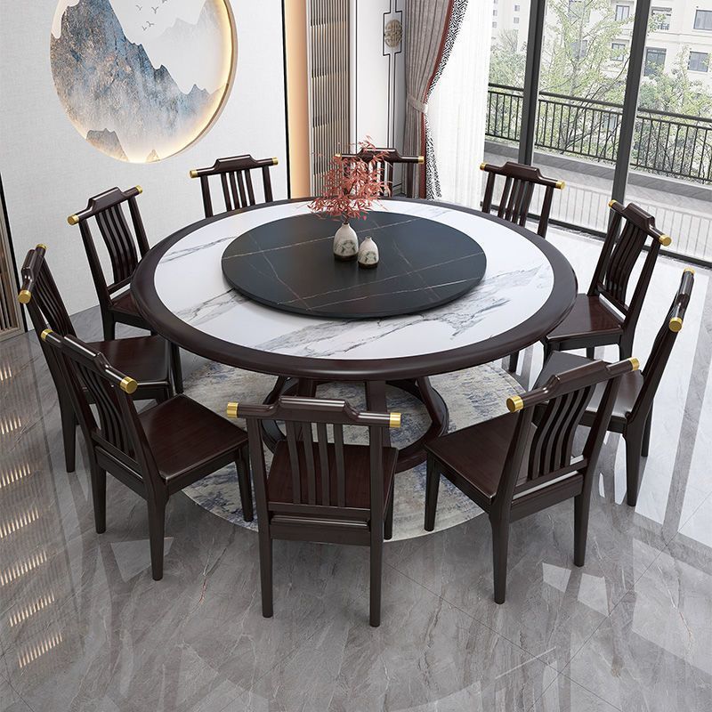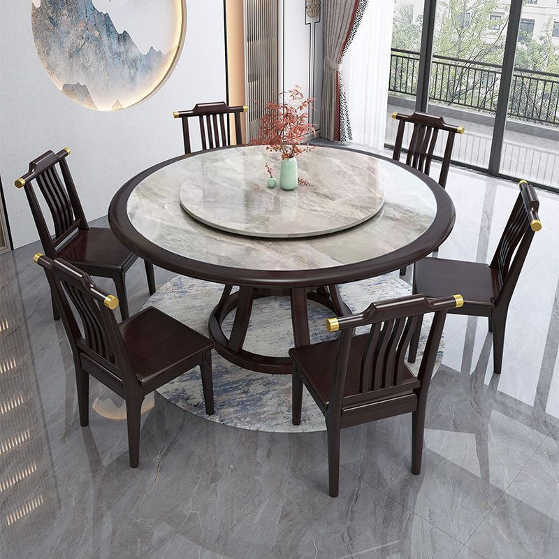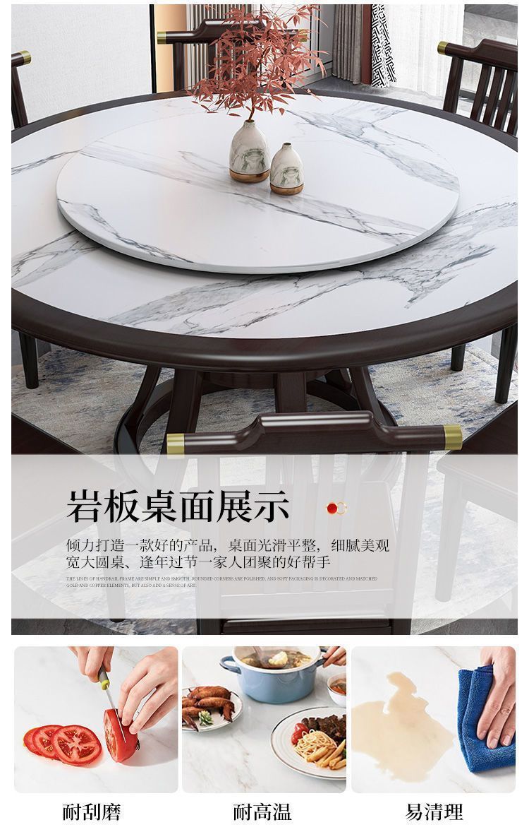 Bàn ghế ăn bằng đá nguyên khối kiểu Trung Quốc mới kết hợp ngôi nhà tối giản hiện đại với bàn xoay nhà hàng bếp từ bàn tròn lớn