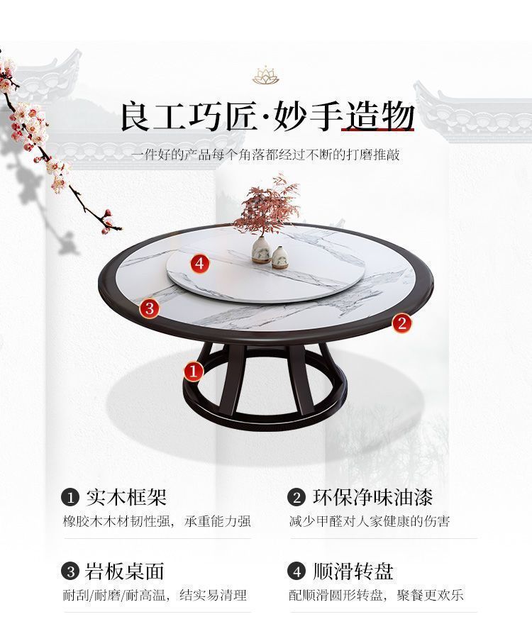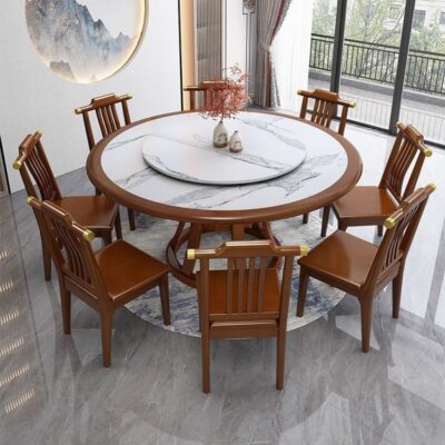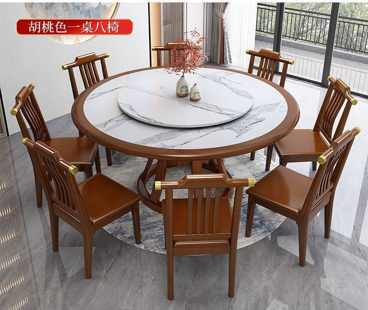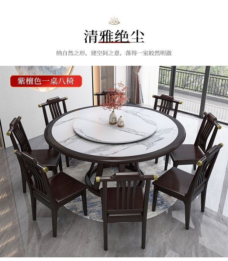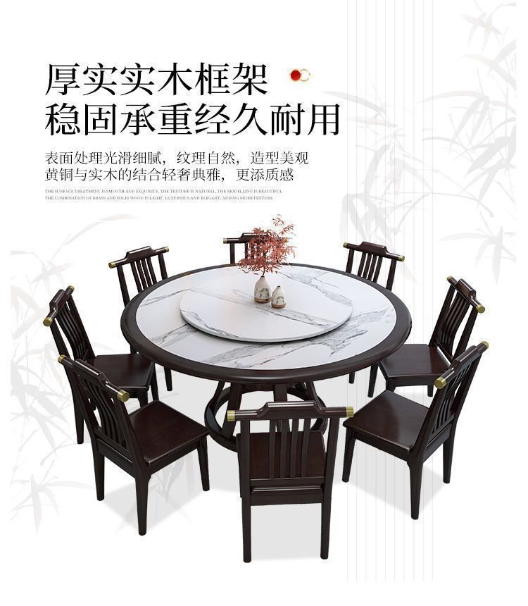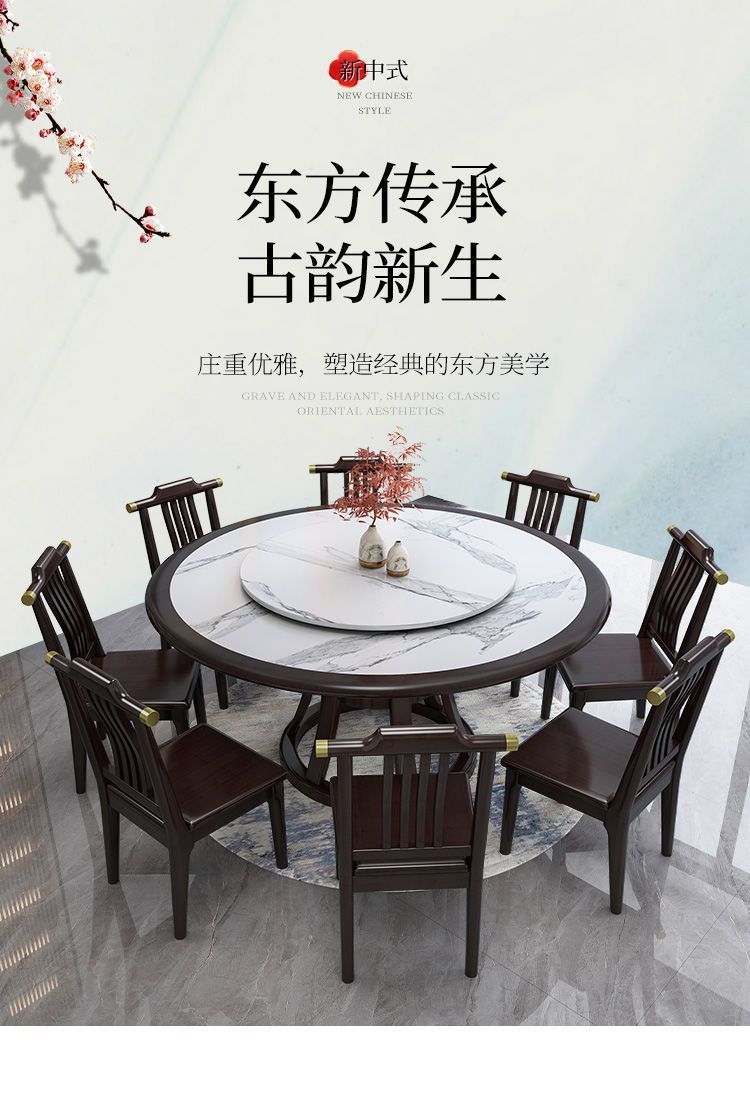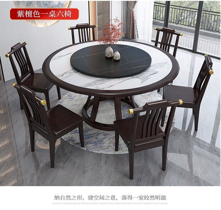 Bàn ghế ăn bằng đá nguyên khối kiểu Trung Quốc mới kết hợp ngôi nhà tối giản hiện đại với bàn xoay nhà hàng bếp từ bàn tròn lớn