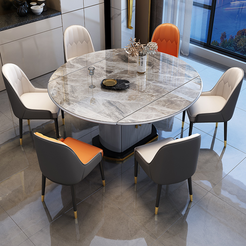 Bàn ghế ăn bằng đá phiến nhẹ sang trọng kết hợp bàn vuông và tròn với bếp từ, bàn tròn dạng ống lồng, bàn ăn gia đình đa năng