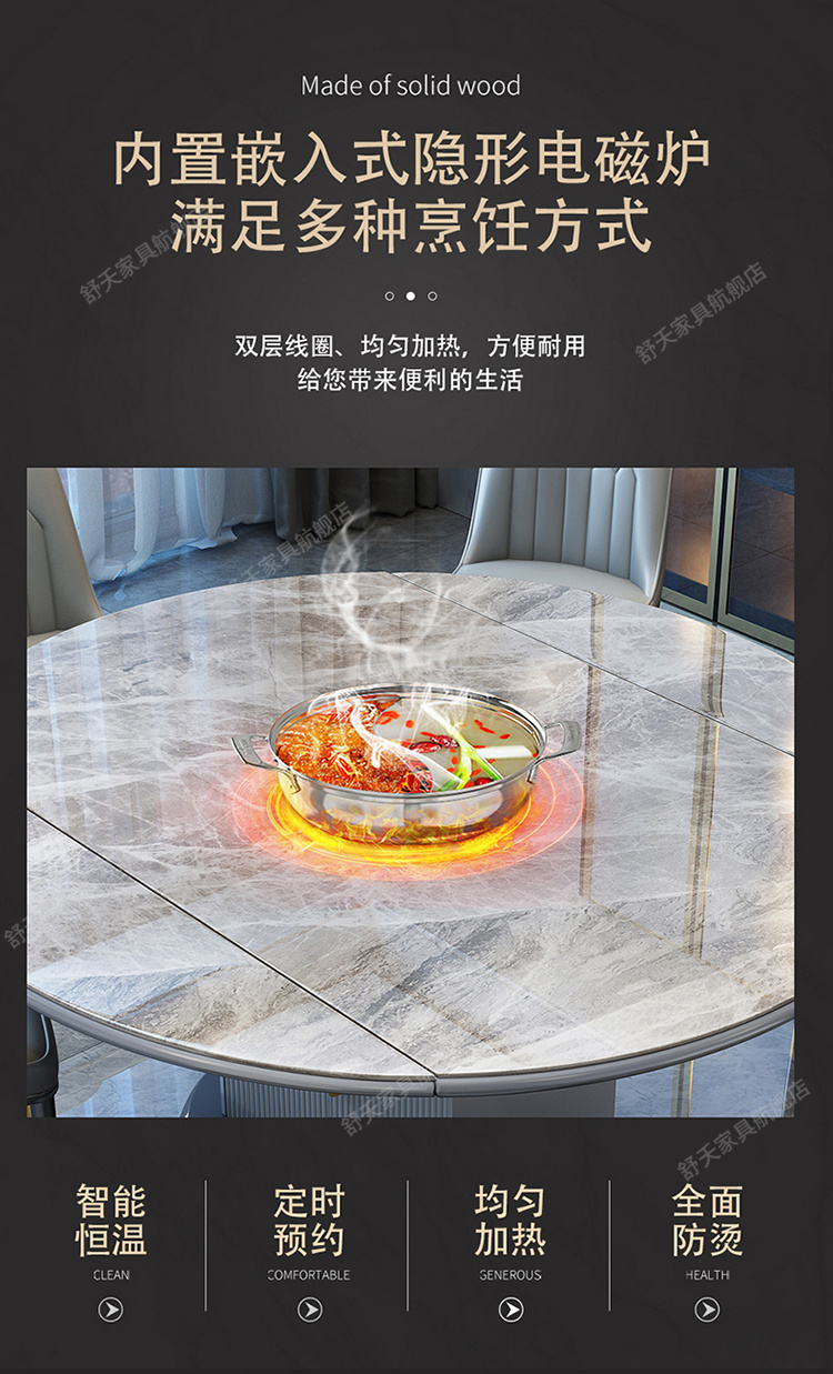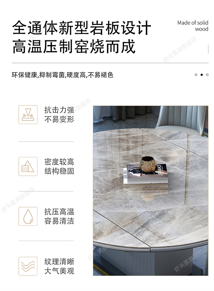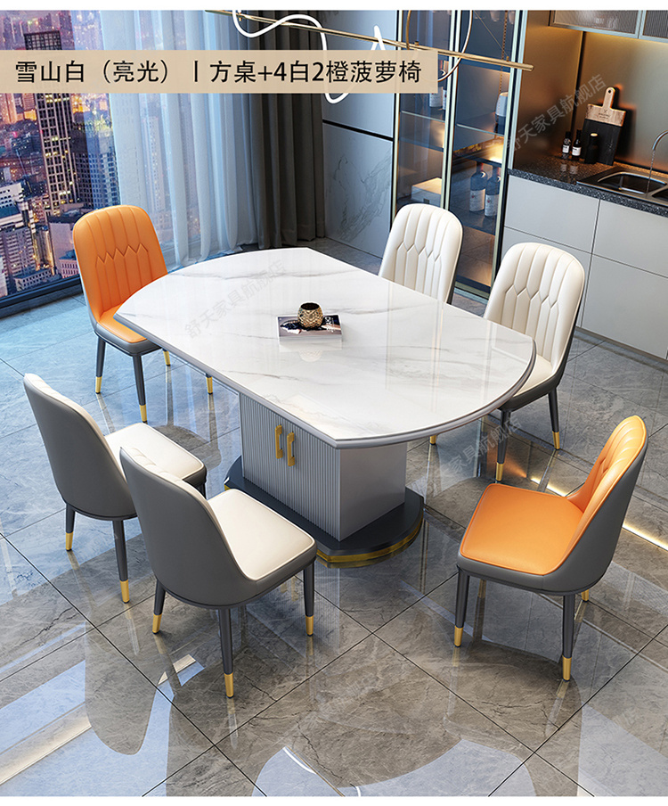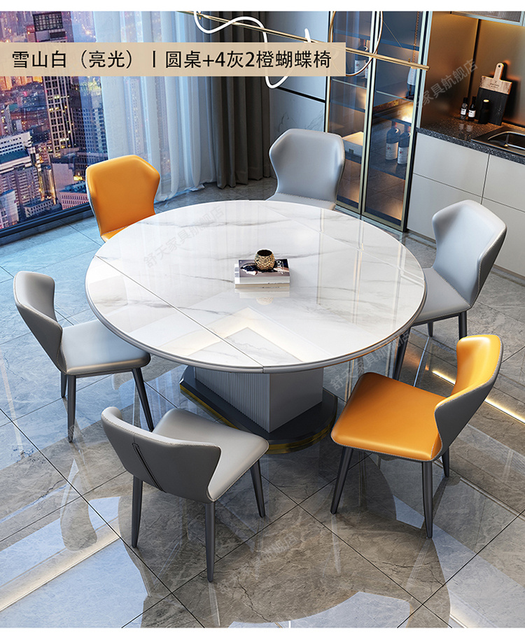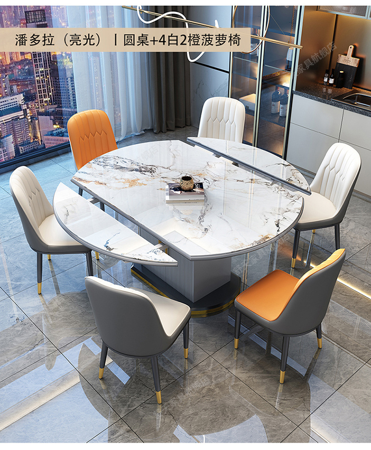 Bàn ghế ăn bằng đá phiến sáng màu kết hợp kiểu gấp kính thiên văn tối giản hiện đại với bàn tròn lưu trữ biến nhà cho căn hộ nhỏ là sản phẩm nổi bật trong dòng bàn ăn nhập khẩu, thiết kế hiện đại và sang trọng, phù hợp với nhiều không gian nội thất cao cấp.