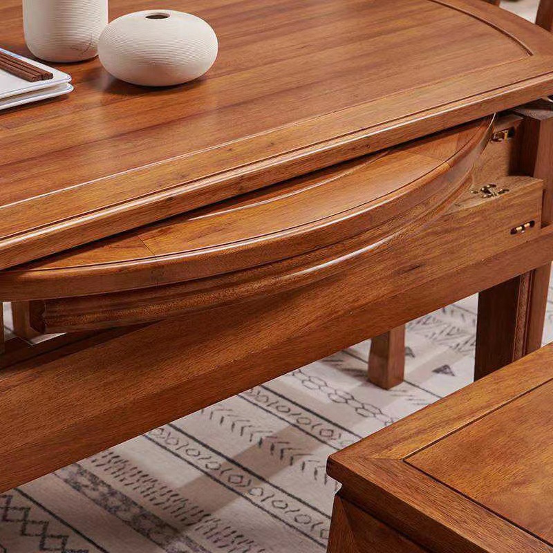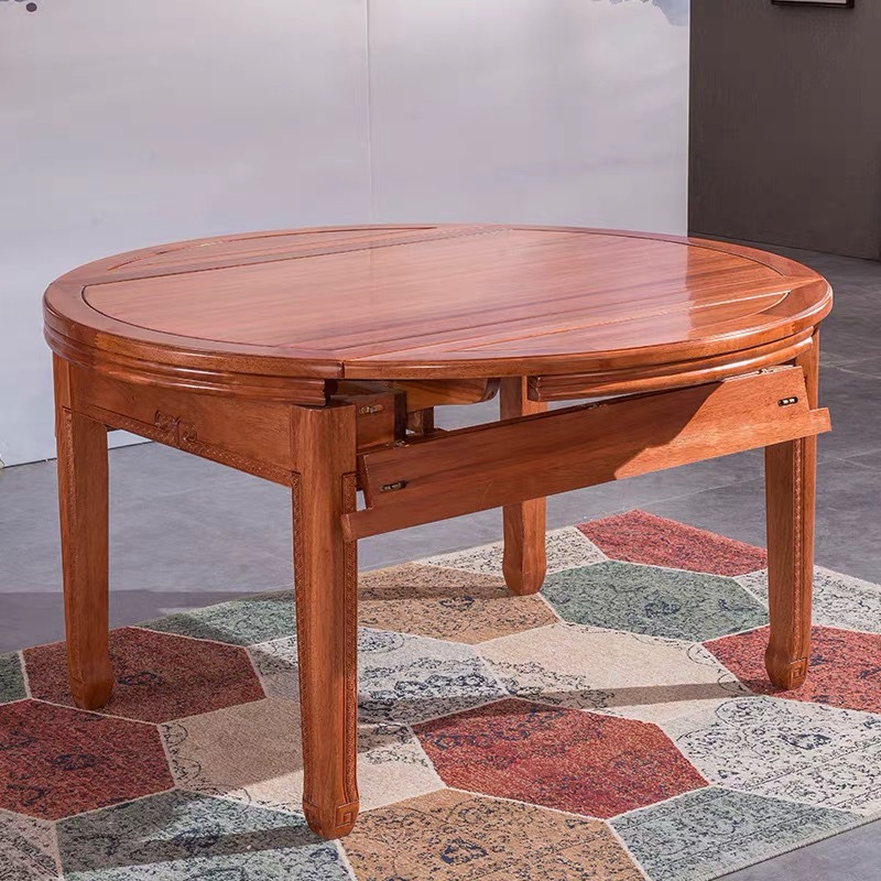 Bàn ghế ăn bằng gỗ hồng mộc kiểu Trung Quốc mới kết hợp bàn ăn bằng gỗ gụ Bàn ăn cổ nội thất tất cả bàn ăn bằng gỗ nguyên khối có thể thu vào