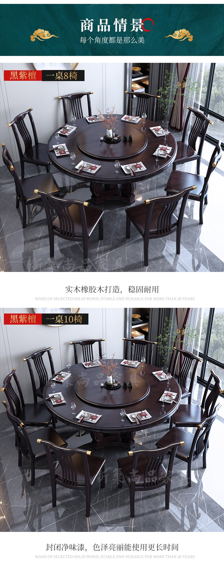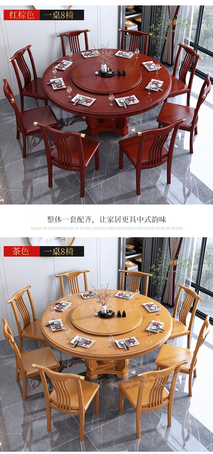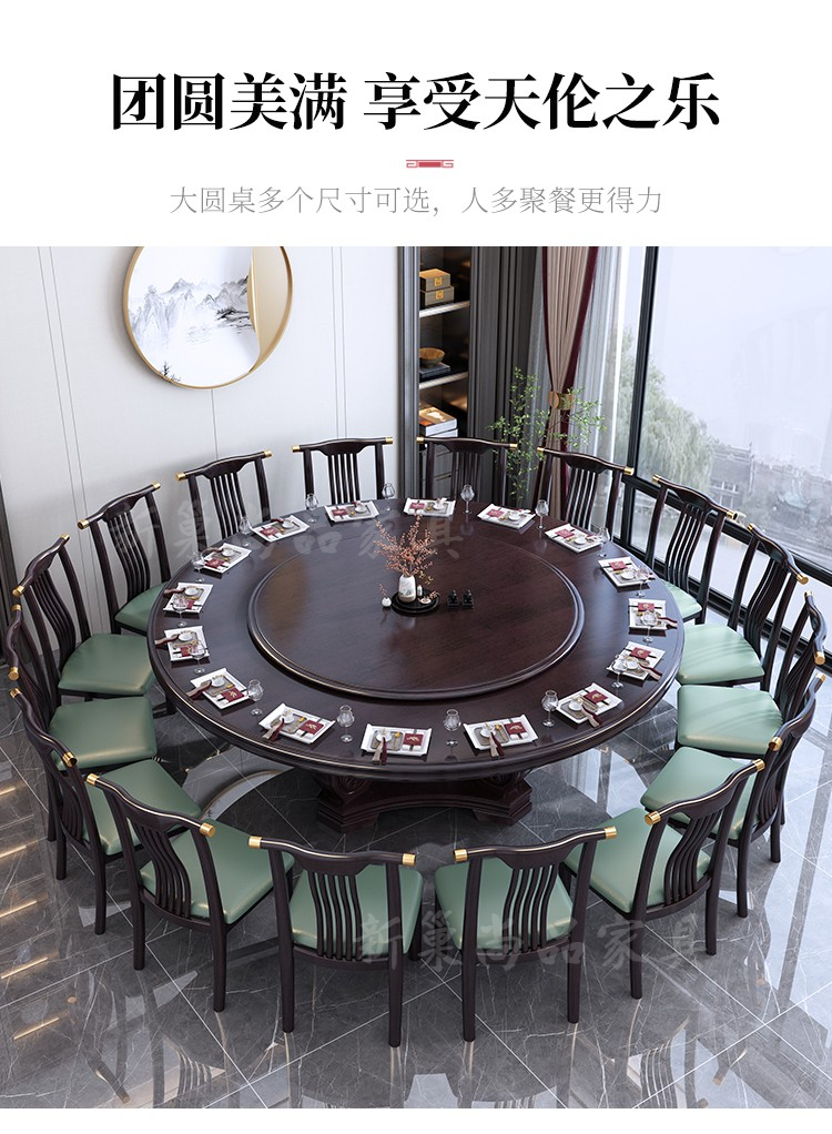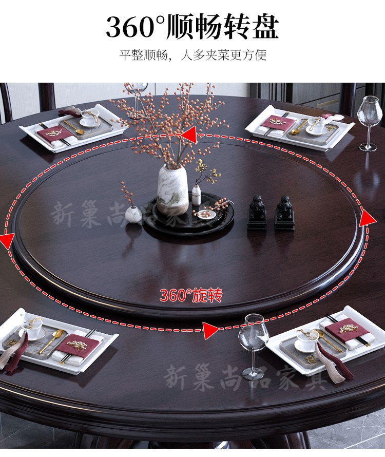 Bàn ghế ăn bằng gỗ nguyên khối kết hợp bàn tròn khách sạn kiểu Trung Quốc mới với bàn xoay bàn ăn gia đình tối giản hiện đại Bàn ăn tròn gia đình tối giản cho 10 người – Bàn ăn nhập khẩu cao cấp