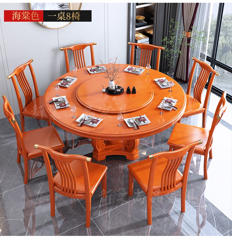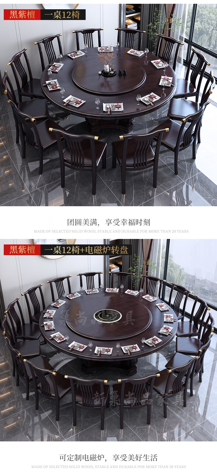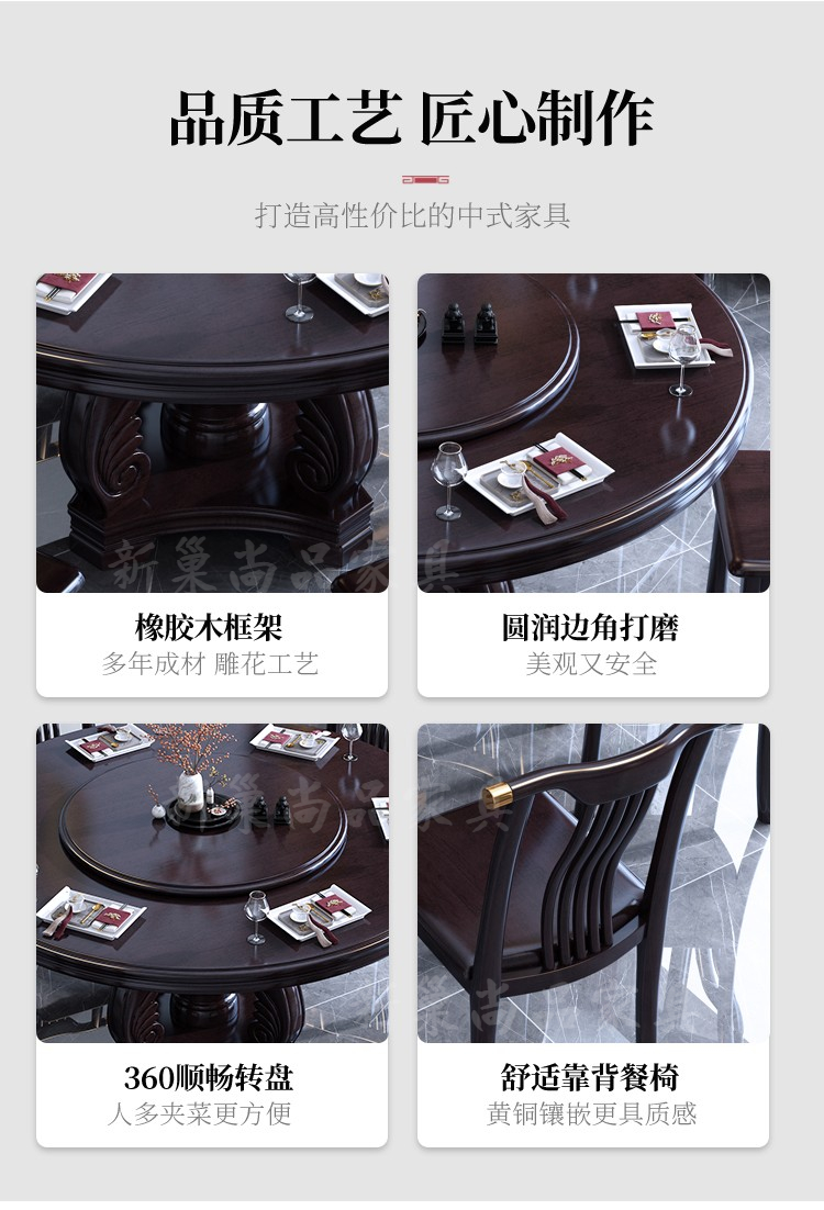Bàn ghế ăn bằng gỗ nguyên khối kết hợp bàn tròn khách sạn kiểu Trung Quốc mới với bàn xoay bàn ăn gia đình tối giản hiện đại Bàn ăn tròn gia đình tối giản cho 10 người – Bàn ăn nhập khẩu cao cấp