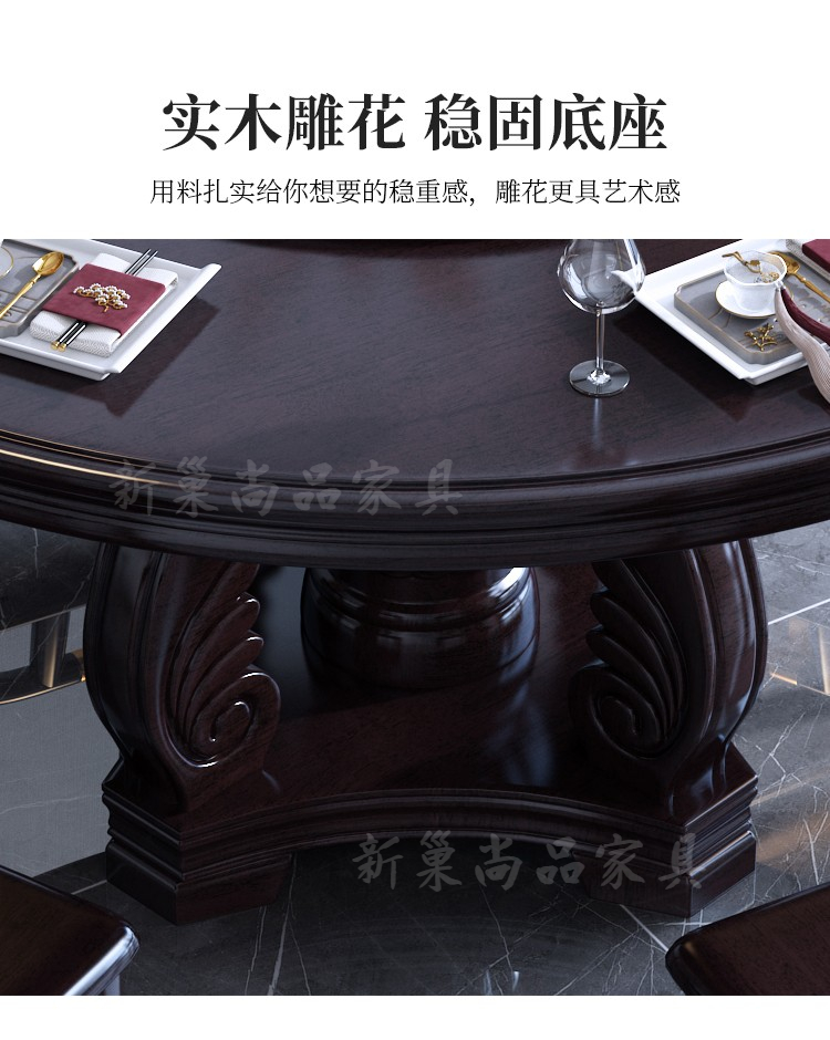 Bàn ghế ăn bằng gỗ nguyên khối kết hợp bàn tròn khách sạn kiểu Trung Quốc mới với bàn xoay bàn ăn gia đình tối giản hiện đại Bàn ăn tròn gia đình tối giản cho 10 người là sản phẩm nổi bật trong dòng bàn ăn nhập khẩu, thiết kế hiện đại và sang trọng, phù hợp với nhiều không gian nội thất cao cấp.