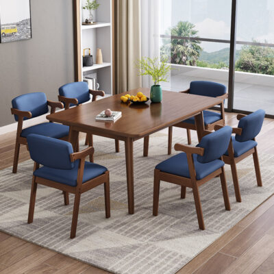 Bàn ghế ăn bằng gỗ nguyên khối kiểu Bắc Âu kết hợp căn hộ vừa và nhỏ bàn ăn kiểu phương Tây tối giản hiện đại nhà hàng gia đình bàn ăn hình chữ nhật