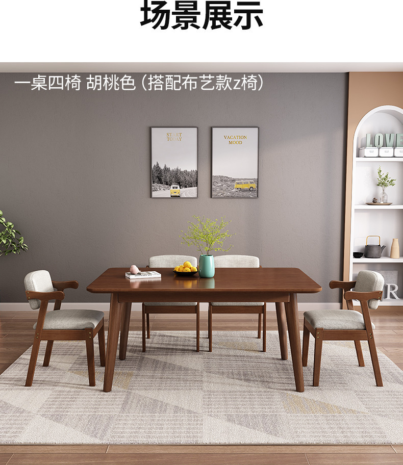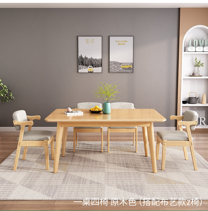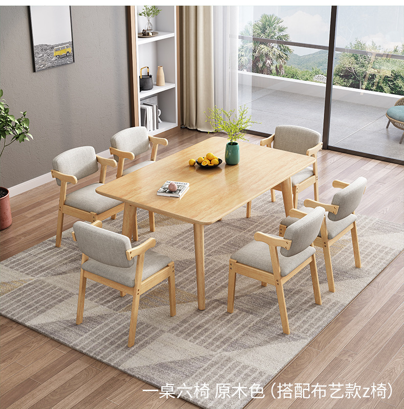Bàn ghế ăn bằng gỗ nguyên khối kiểu Bắc Âu kết hợp căn hộ vừa và nhỏ bàn ăn kiểu phương Tây tối giản hiện đại nhà hàng gia đình bàn ăn hình chữ nhật