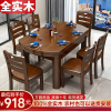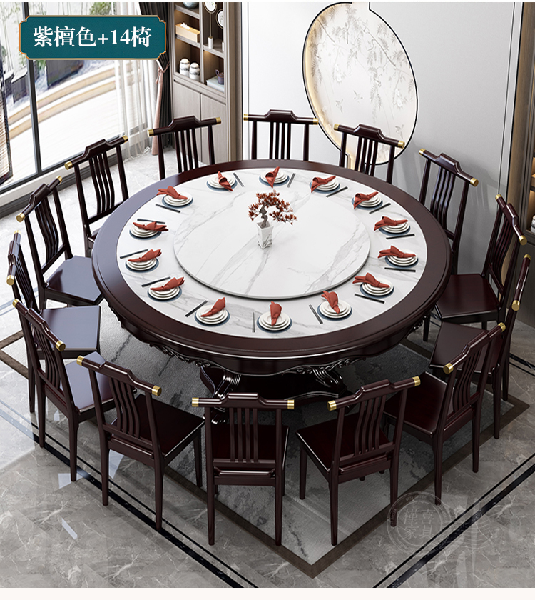 Bàn ghế ăn bằng gỗ nguyên khối kiểu Trung Quốc tròn 1,8m kết hợp dày dặn khách sạn đơn giản bàn tròn lớn bếp từ nhà