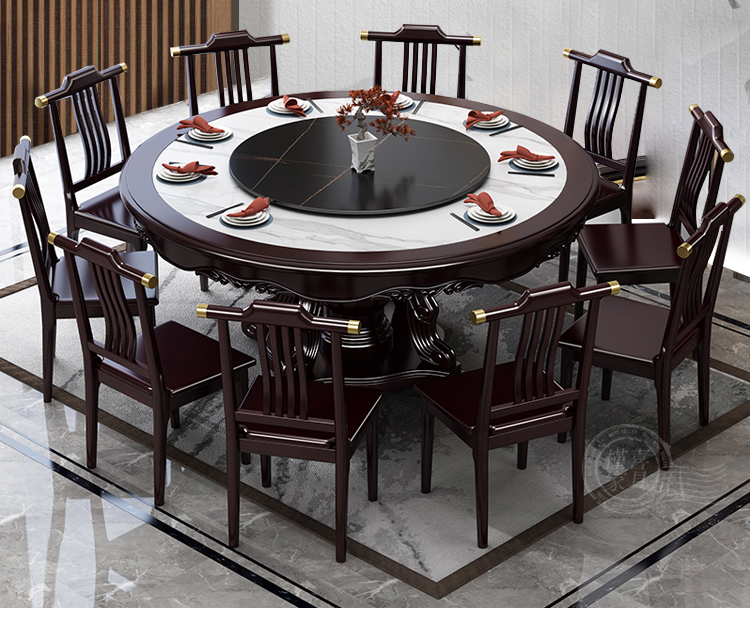 Bàn ghế ăn bằng gỗ nguyên khối kiểu Trung Quốc tròn 1,8m kết hợp dày dặn khách sạn đơn giản bàn tròn lớn bếp từ nhà là sản phẩm nổi bật trong dòng bàn ăn nhập khẩu, thiết kế hiện đại và sang trọng, phù hợp với nhiều không gian nội thất cao cấp.